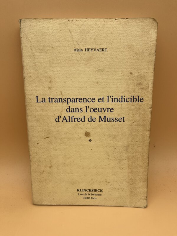 La transparence et l’indicible dans l’oeuvre d’Alfred de Musset – Étude Critique Alain Heyvaert