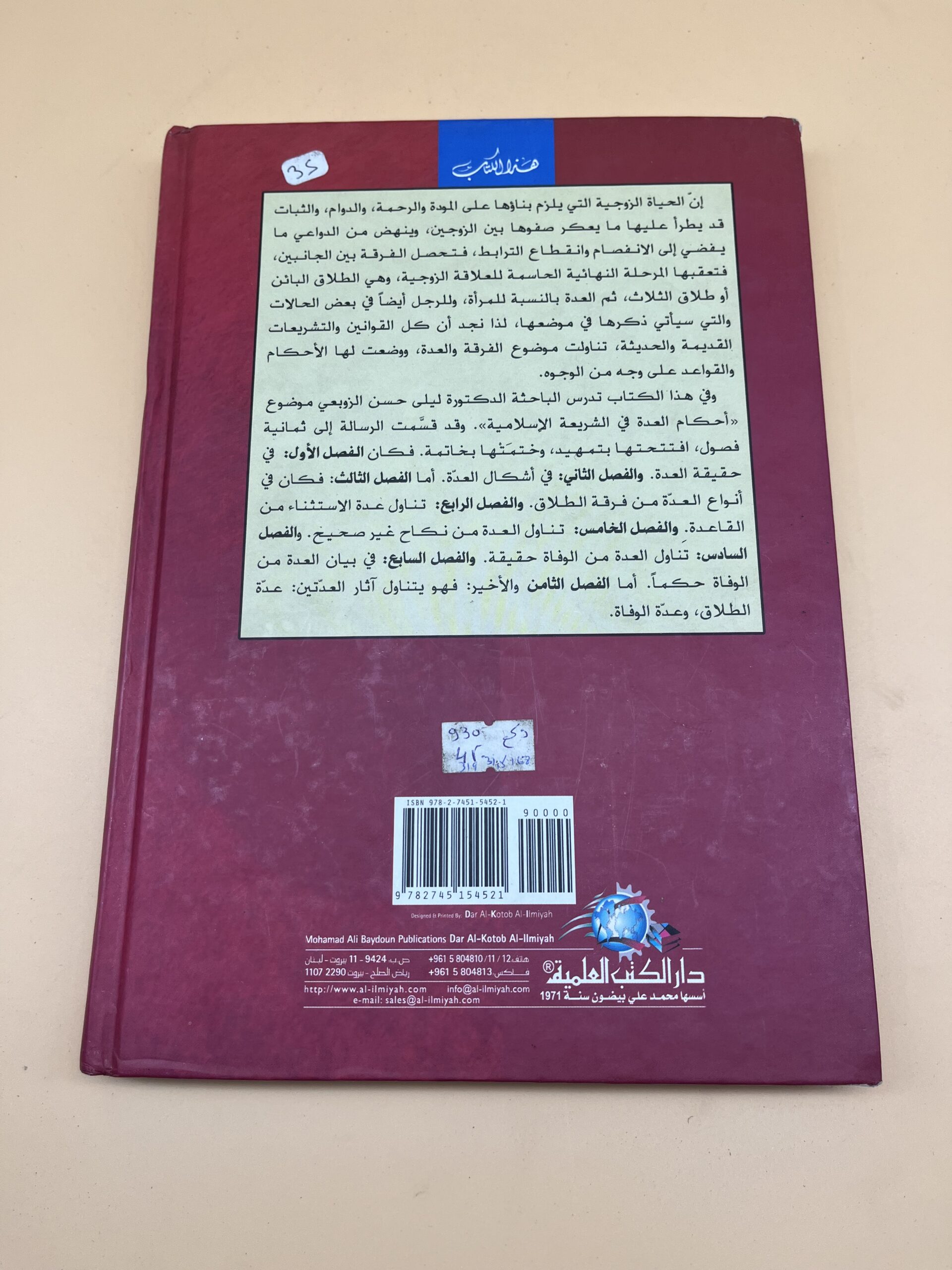 كتاب فقهي يشرح أحكام العدة في الإسلام بالتفصيل، مناسب للباحثين وطلبة العلم الشرعي.