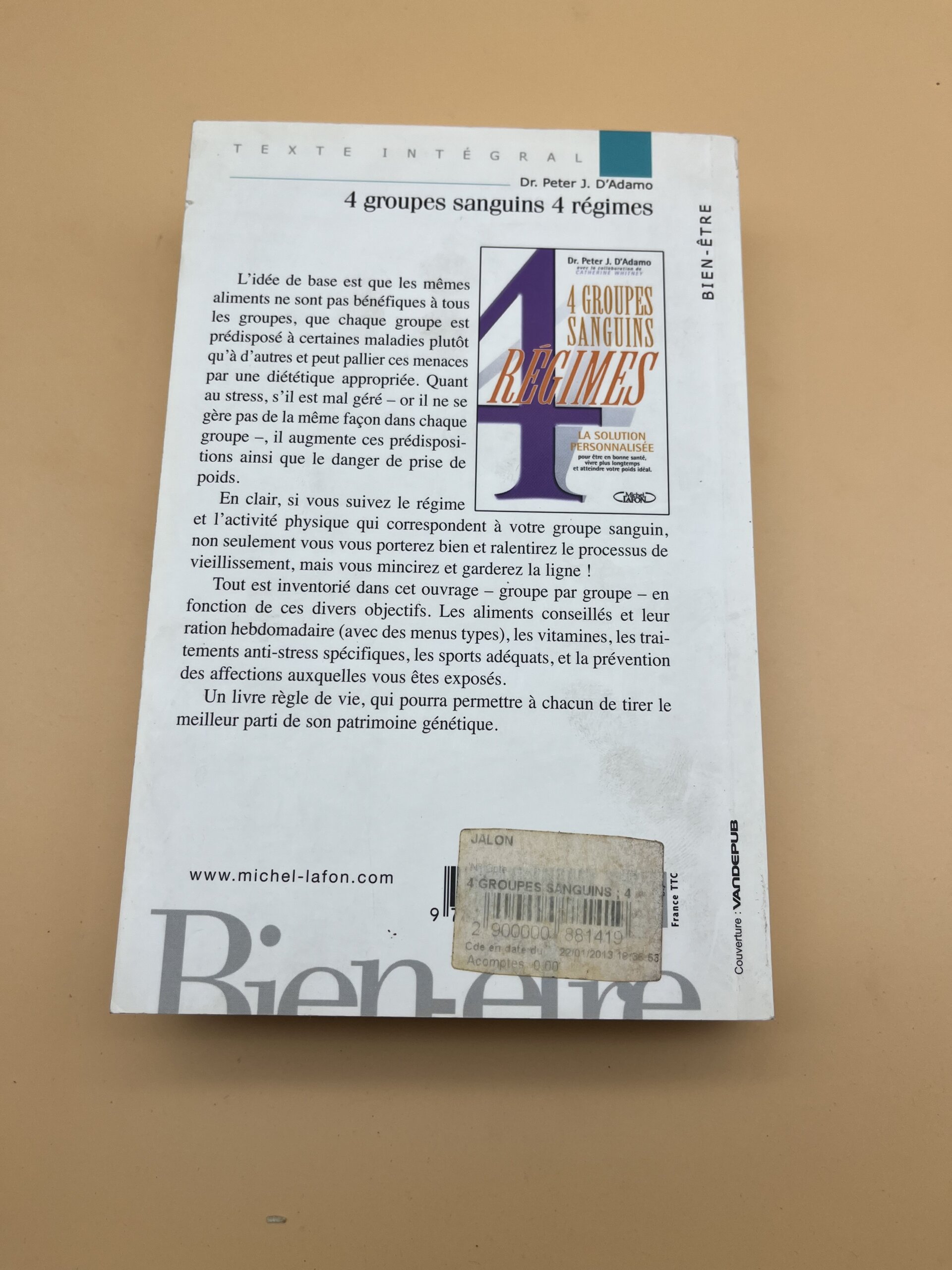 Guide nutrition « 4 groupes sanguins, 4 régimes » du Dr Peter J. D’Adamo (Michel Lafon, 2003). Alimentation adaptée à votre groupe sanguin.