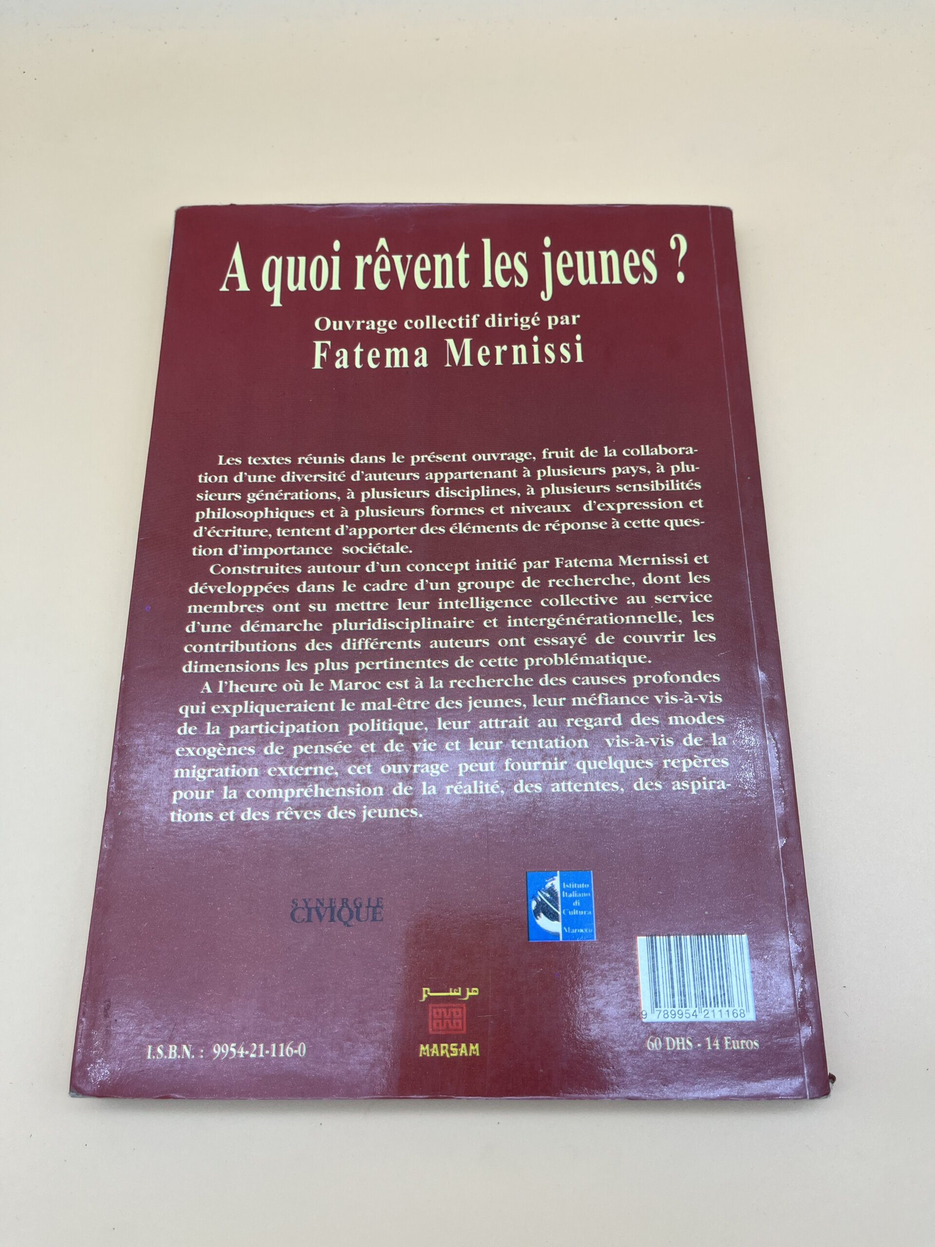 Ouvrage collectif dirigé par Fatema Mernissi consacré aux rêves, aux ambitions et aux frustrations des jeunes au Maroc. À travers des enquêtes et analyses sociologiques, le livre explore les attentes sociales, culturelles et politiques de la jeunesse marocaine.