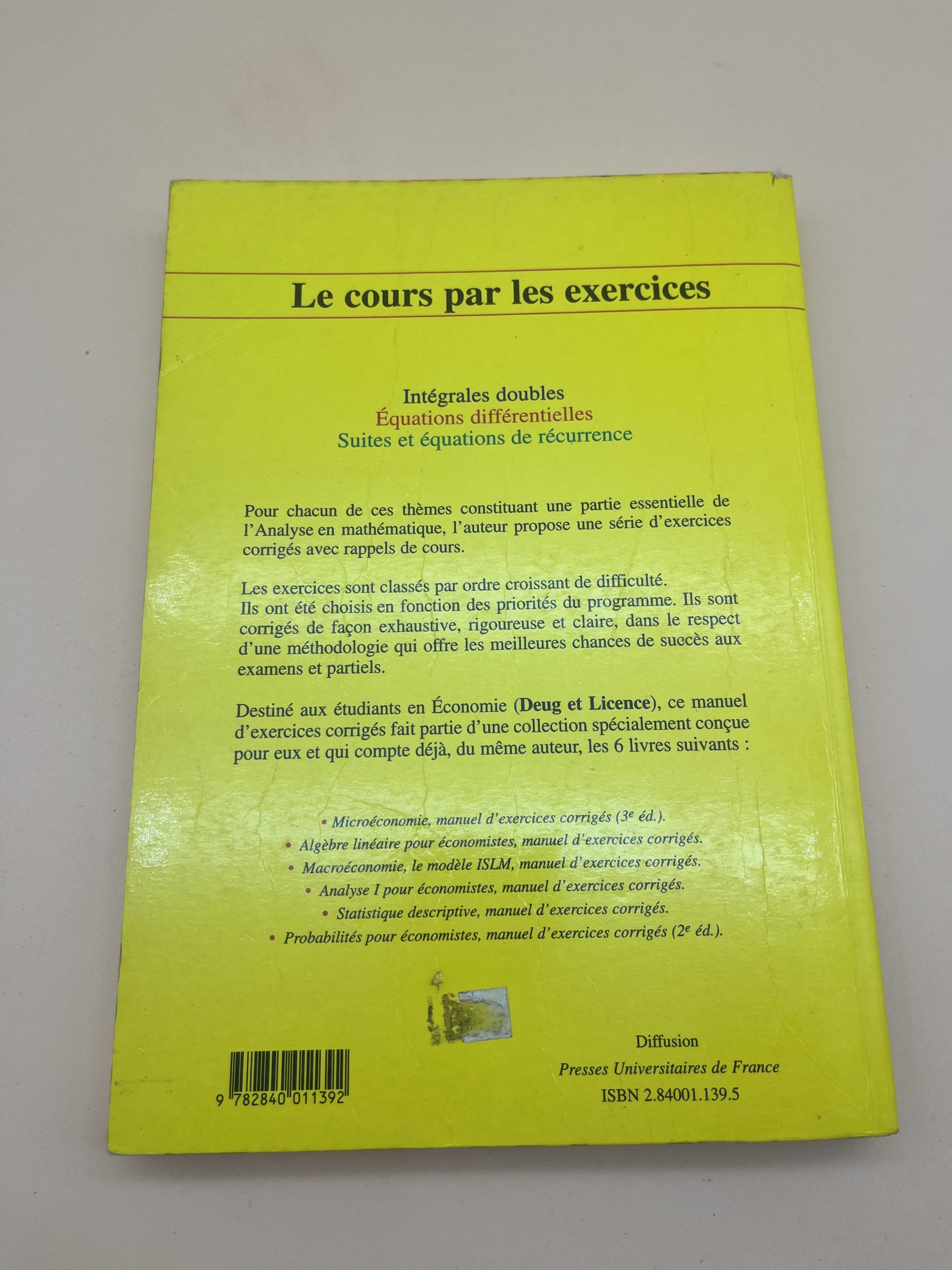 Description : Exercices corrigés sur intégrales doubles, équations différentielles, suites et récurrence, spécialement conçu pour étudiants en économie, gestion et finance. Guide parfait pour réussir en analyse mathématique.