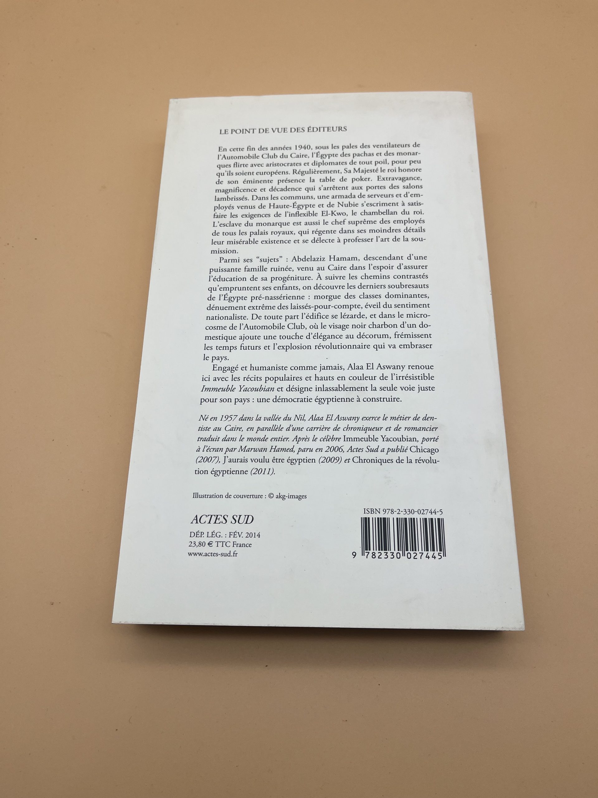Roman d’Alaa El Aswany chez Actes Sud: le Caire royal, serviteurs et pouvoir; grande fresque sociale égyptienne.
