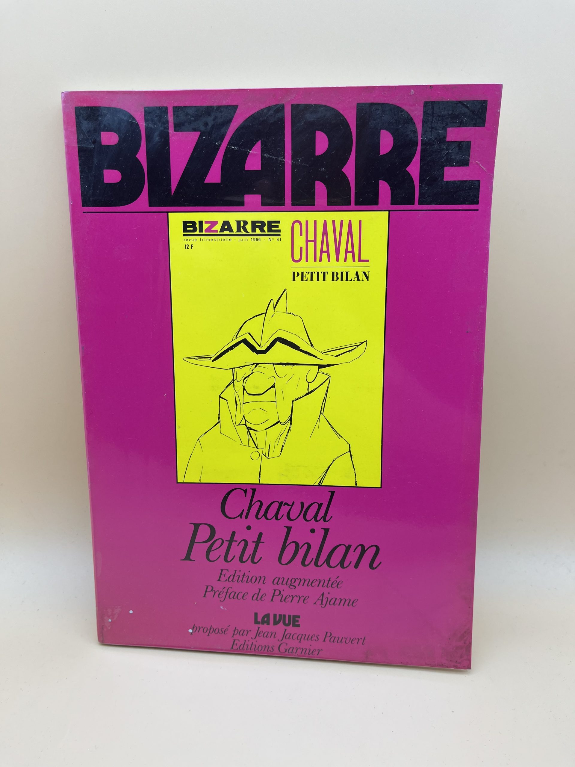 Numéro spécial de la revue Bizarre consacré au dessinateur Chaval, avec dessins satiriques, analyses, témoignages et une préface de Pierre Ajame. Un volume recherché par collectionneurs de revues, amateurs d’humour noir, de caricature française et d’histoire de la presse illustrée.