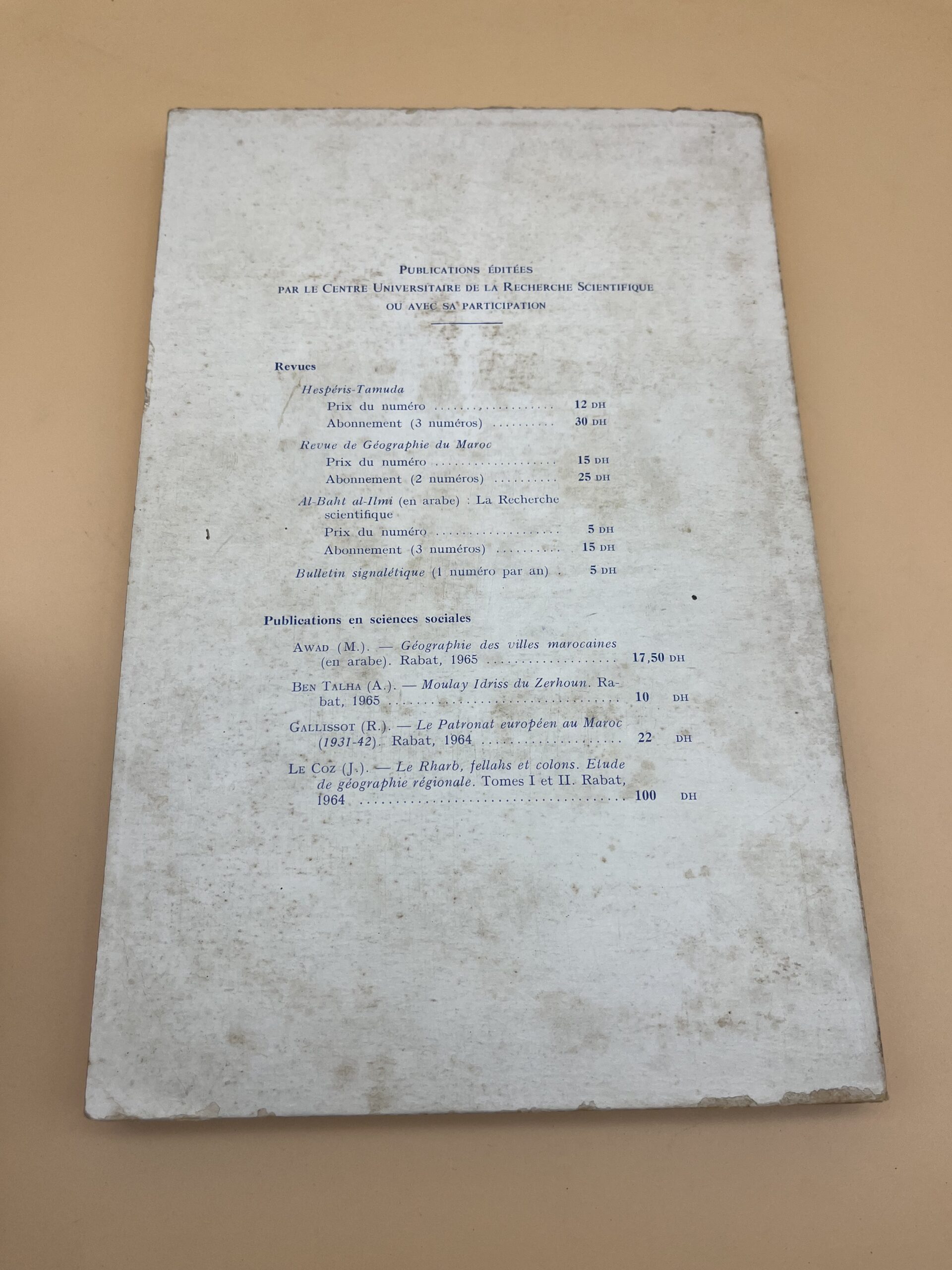 Numéro historique consacré aux politiques commerciales au Maghreb, à l’agriculture du bassin du Sebou et aux questions sociales (travail féminin, investissement, développement national). Source précieuse pour chercheurs en économie marocaine des années 1960.