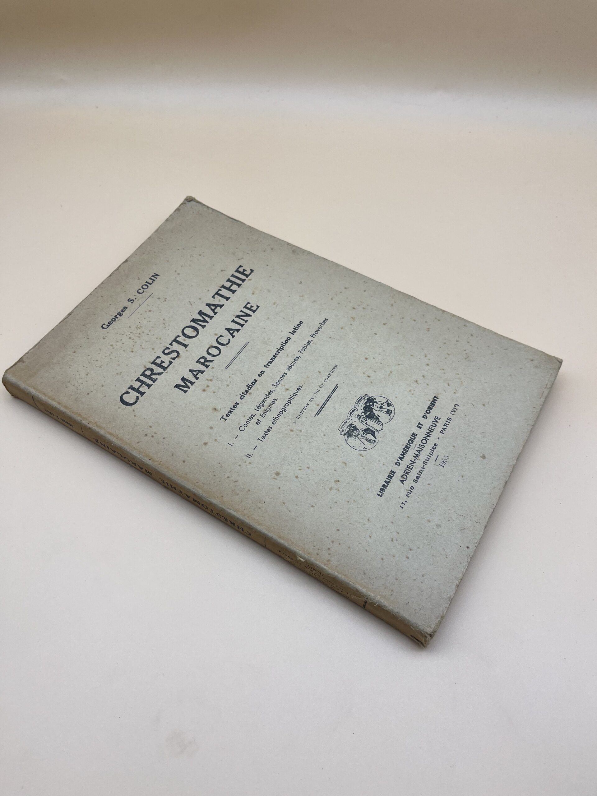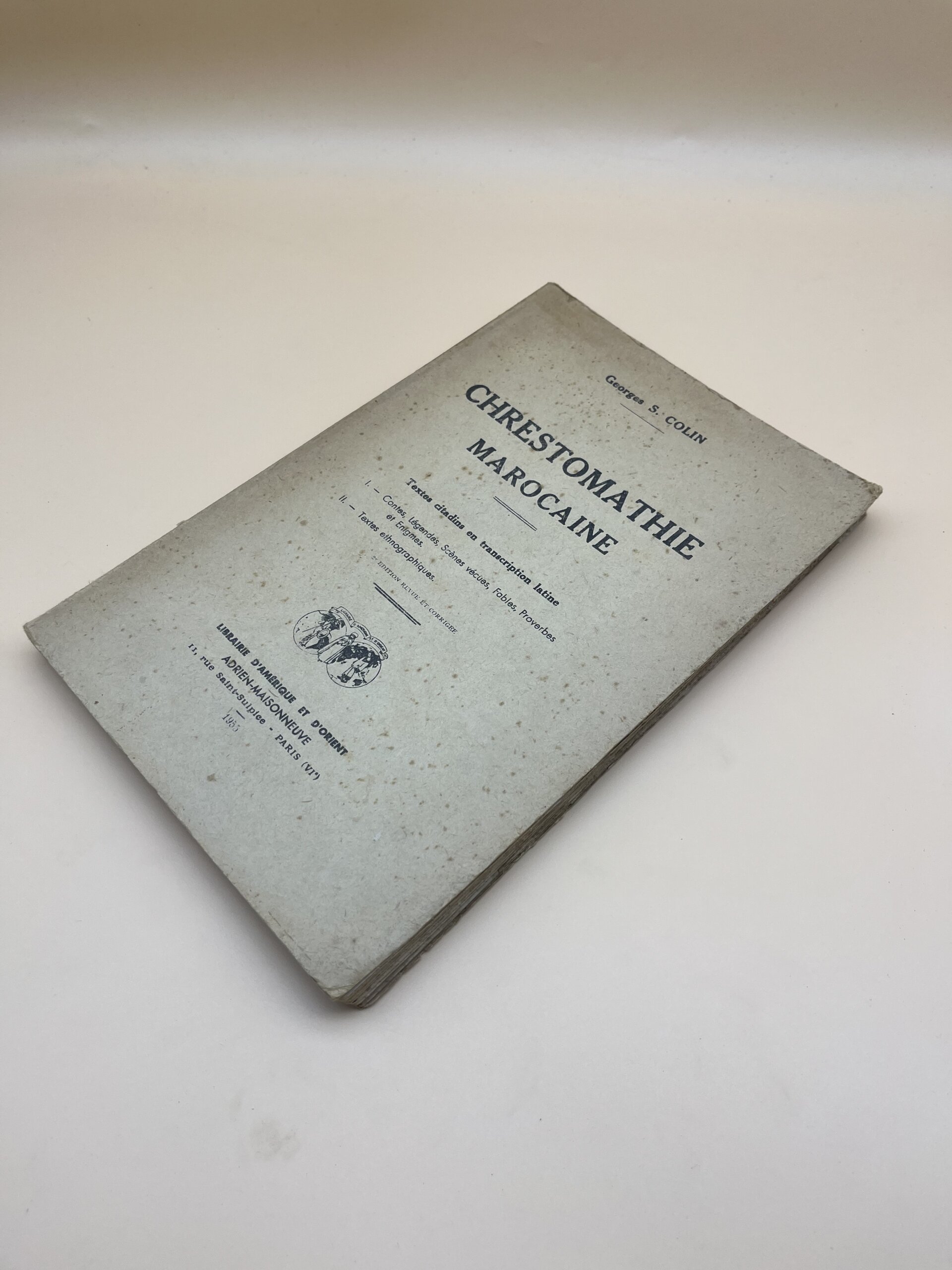 Ouvrage de référence en linguistique marocaine, cette chrestomathie rassemble des textes citadins en arabe marocain transcrits en caractères latins. Contes, légendes, proverbes et textes ethnographiques offrent un témoignage précieux sur la culture populaire et la tradition orale du Maroc.