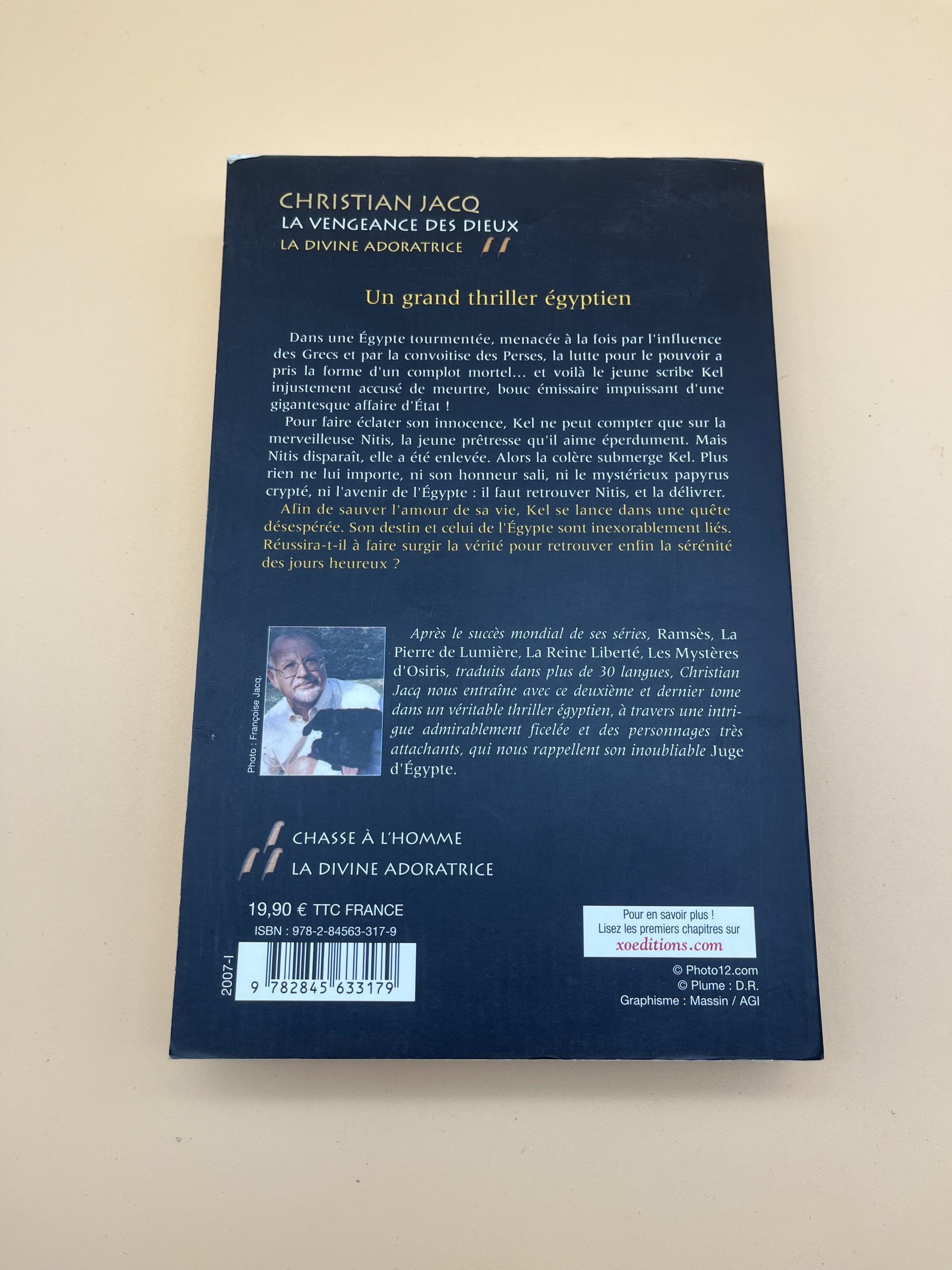 Suite de la saga égyptienne de Christian Jacq chez XO; complots de temple, rituels sacrés et personnages charismatiques pour lecteurs d’archéologie romanesque et mythes pharaoniques.​