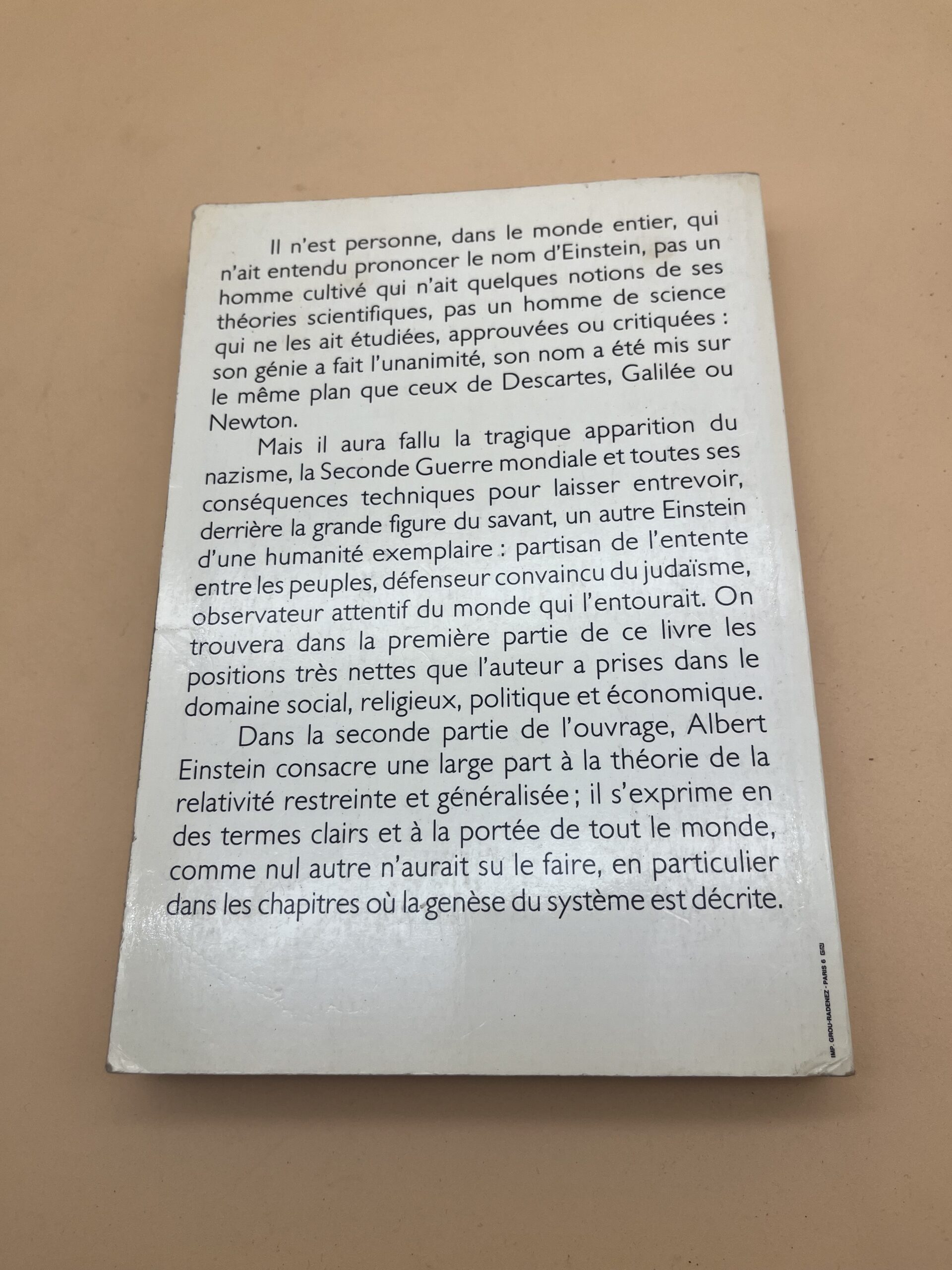 Recueil d’articles et de textes écrits par Albert Einstein entre 1934 et 1958, rassemblés par Rudolf Kayser. Le physicien y expose sa vision du monde, abordant à la fois des questions scientifiques (relativité, mécanique quantique, Newton, Maxwell) et des préoccupations humanistes : pacifisme, socialisme, éducation, religion, responsabilité des scientifiques. Einstein y livre ses réflexions sur la vérité scientifique et ses échanges avec de grands intellectuels (Lorentz, Shaw, Russell). Un testament philosophique du plus grand savant du XXe siècle. Éditions Flammarion.
