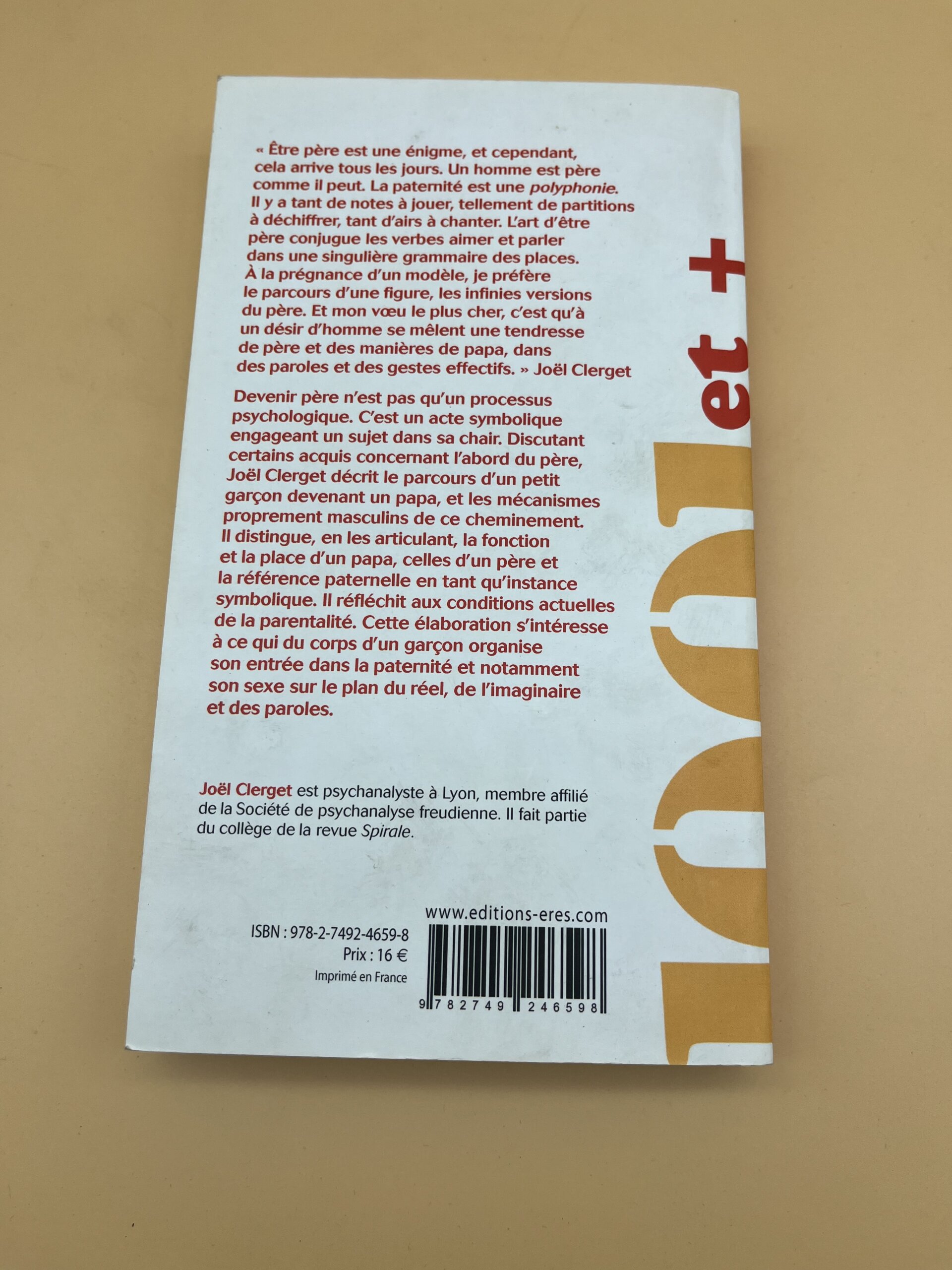 Essai psychanalytique sur la paternité et la construction masculine par Joël Clerget. Devenir père, du fils à l’homme (Ed. Erès).