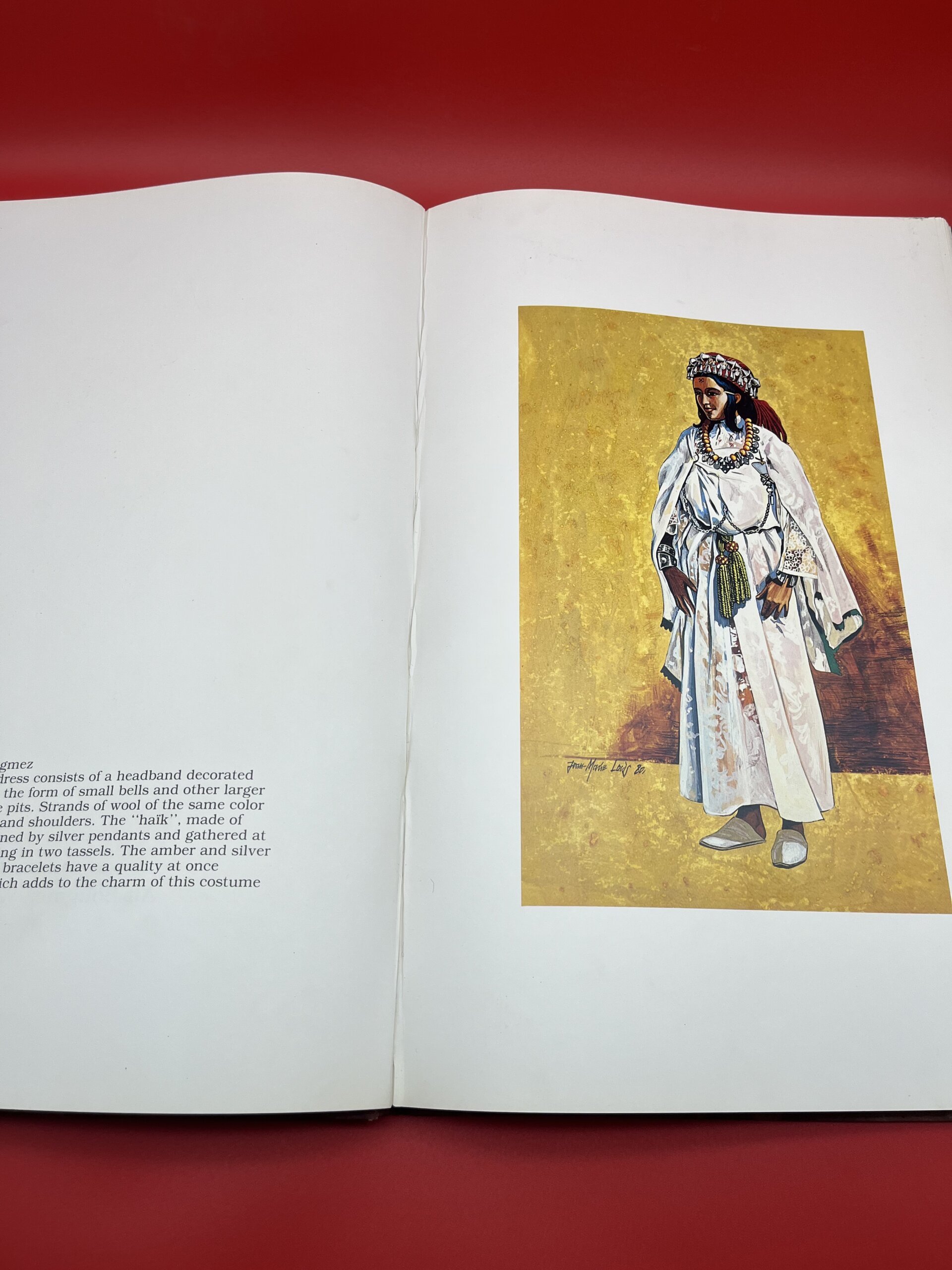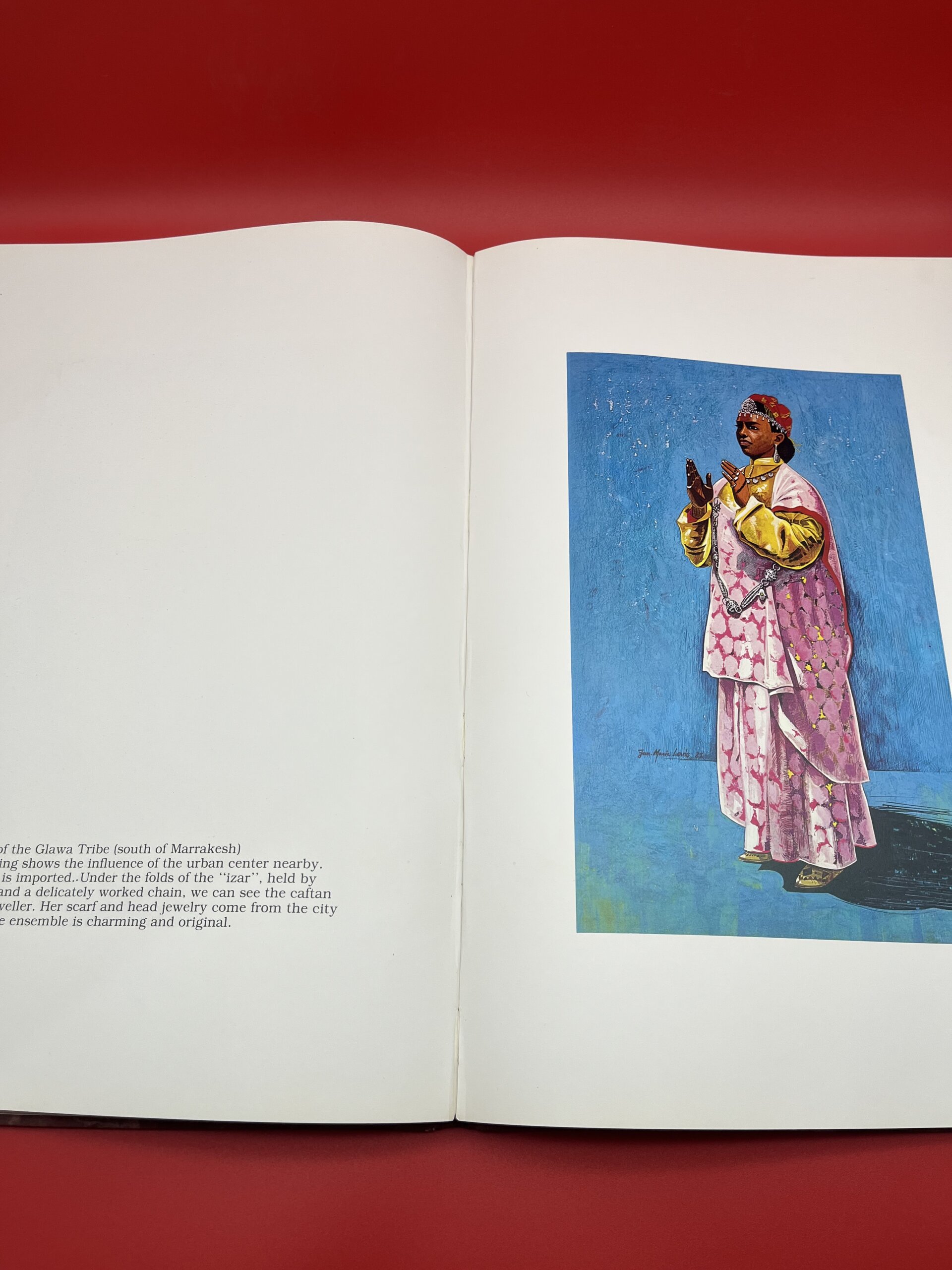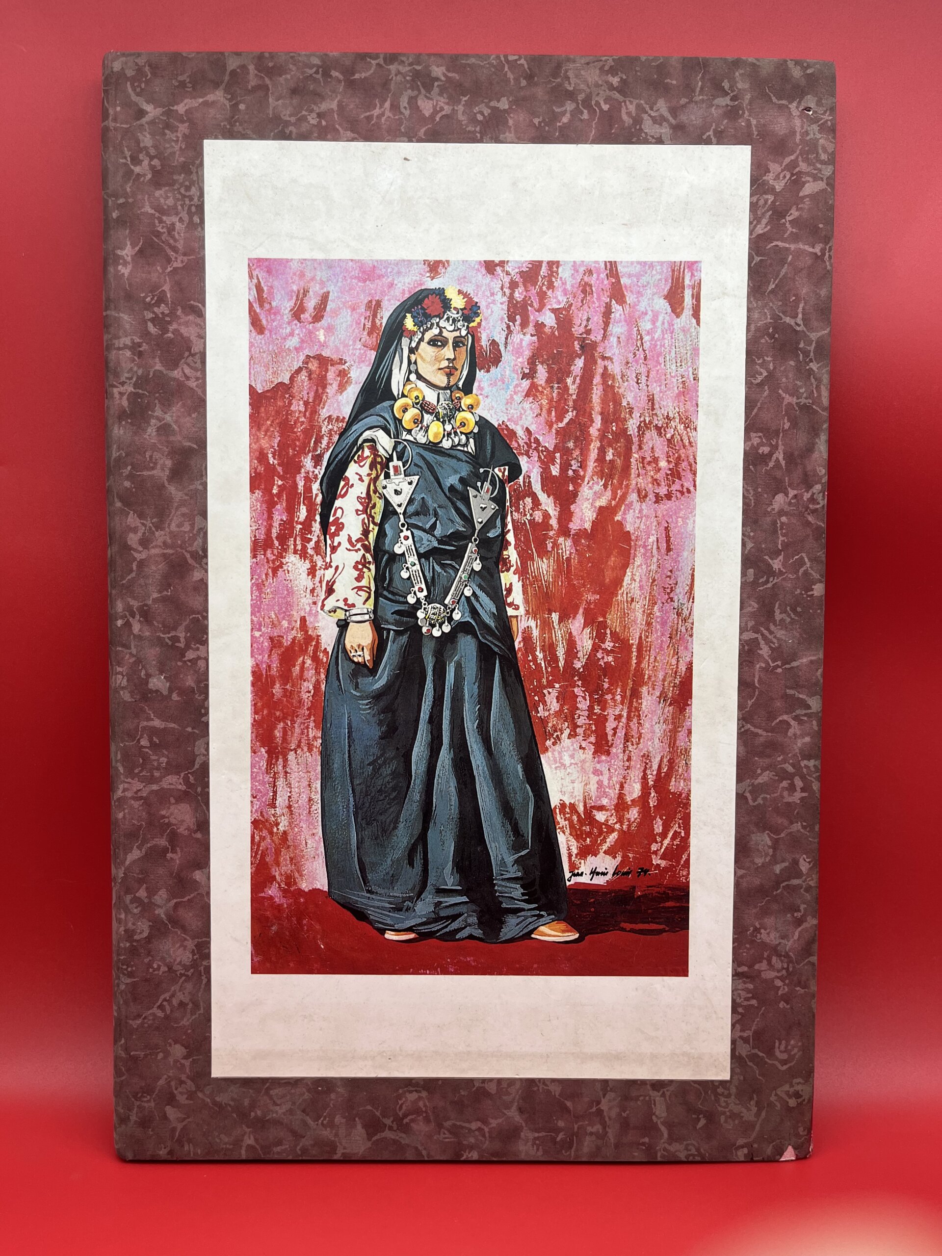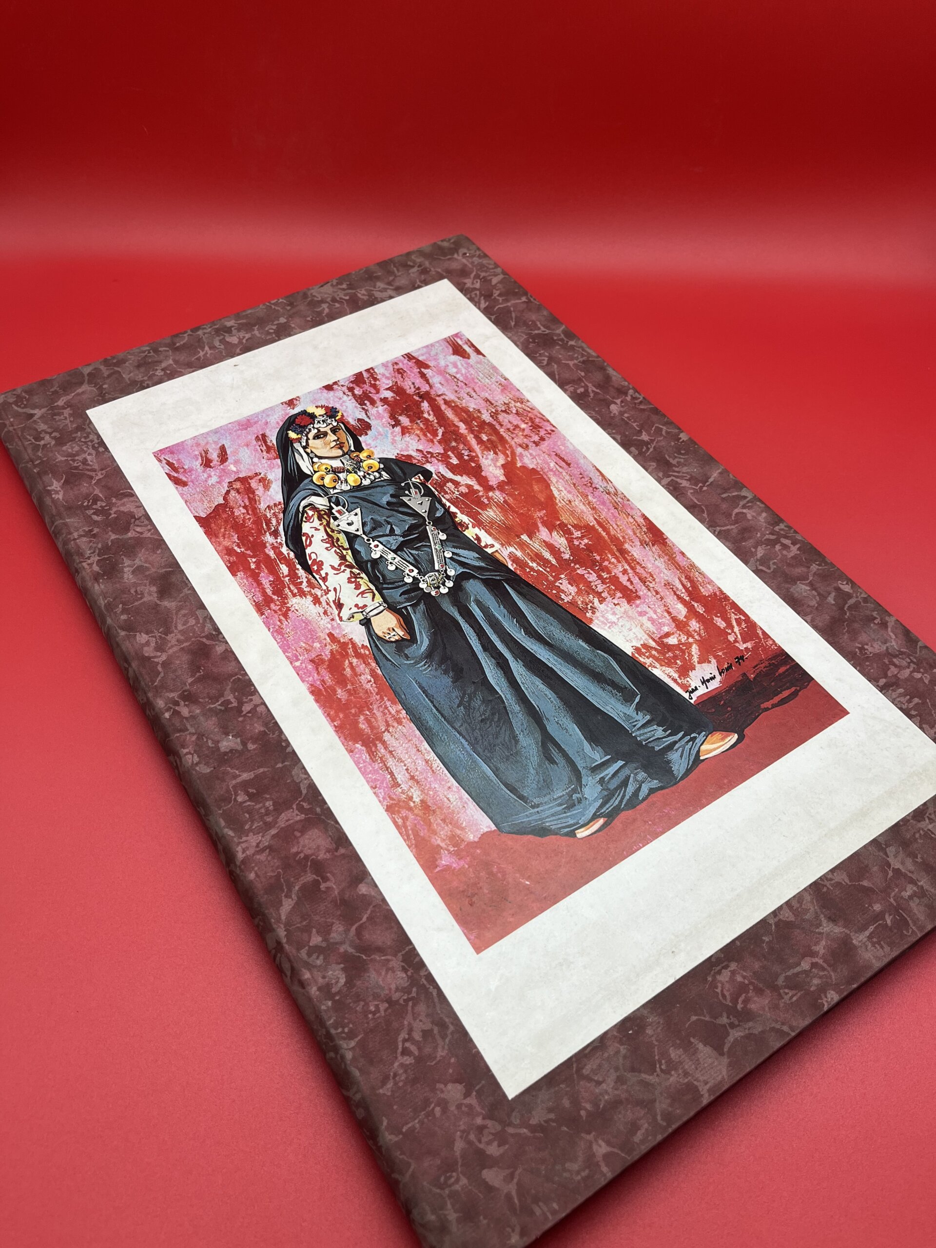 Cet album grand format rassemble des illustrations détaillées de costumes féminins berbères, parés de bijoux en argent, fibules, amulettes et broderies traditionnelles. Chaque planche met en valeur les couleurs, les tissus et les motifs des différentes régions du Maroc, offrant une documentation précieuse sur le patrimoine vestimentaire amazigh. Un livre recherché par les collectionneurs, les passionnés de mode traditionnelle, d’ethnographie et de culture marocaine.