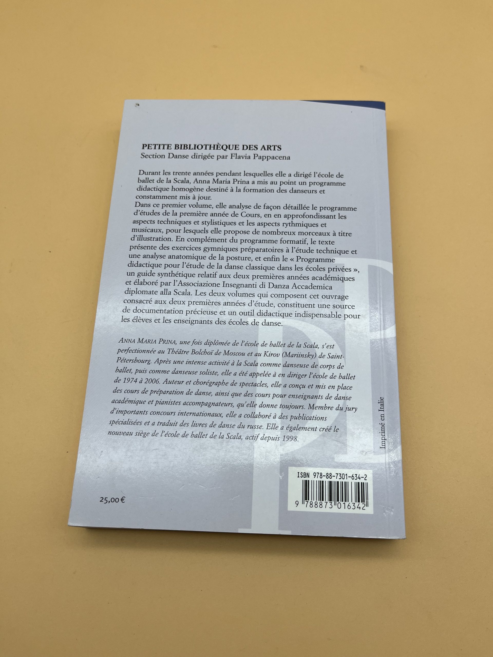 Manuel pédagogique d’Anna Maria Prina qui détaille la construction d’un cours de danse classique, les exercices à la barre et au milieu, ainsi que la progression technique des élèves. Outil indispensable pour professeurs de ballet, écoles de danse, étudiants en pédagogie et danseurs débutants ou intermédiaires.