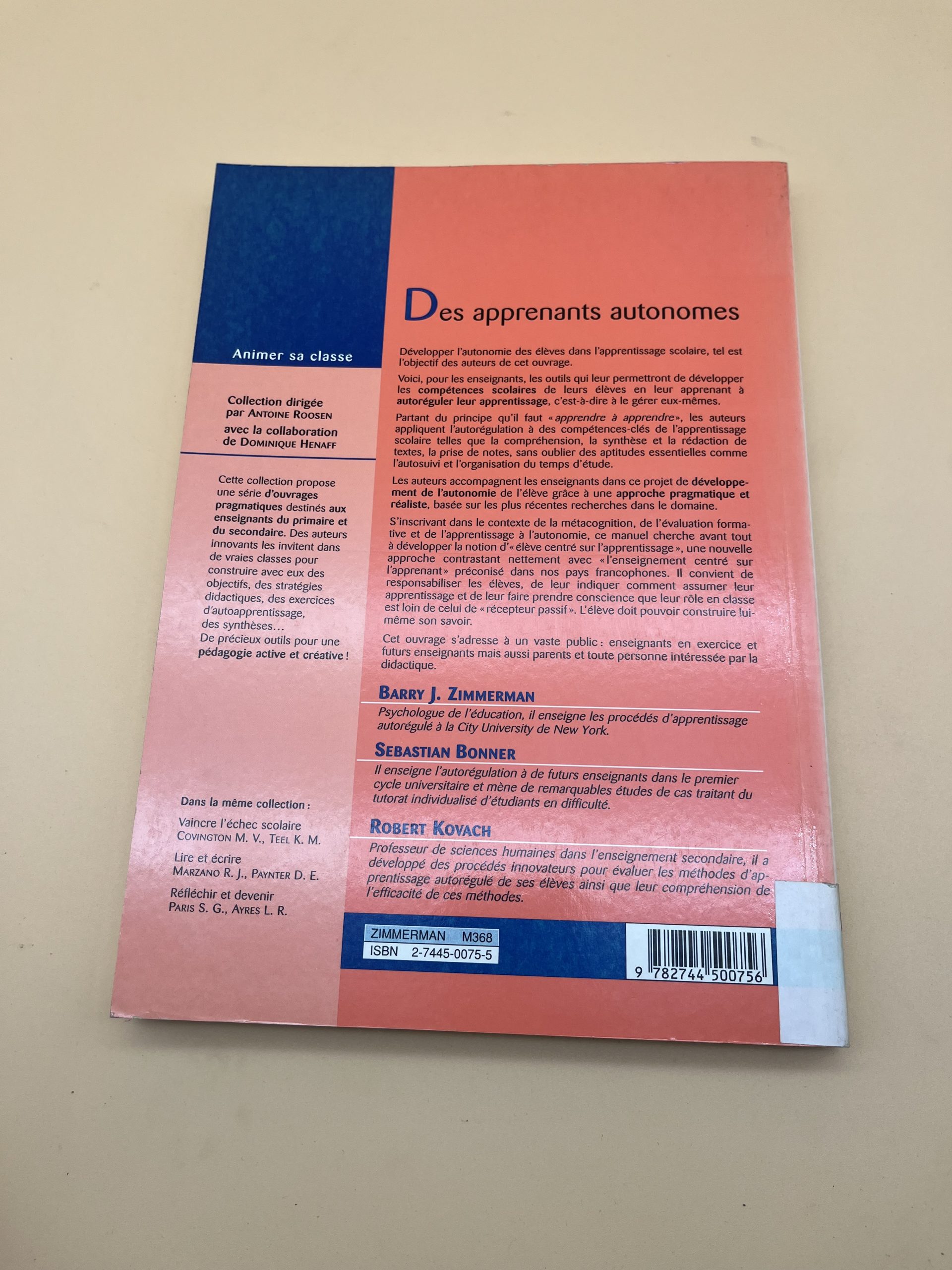 Livre de B.J. Zimmerman (De Boeck) sur l’autorégulation des apprentissages pour former des élèves autonomes.