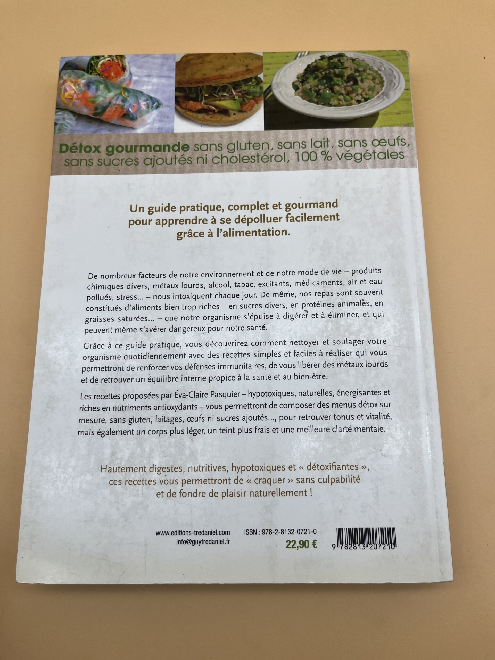 Livre de recettes « Détox gourmande » d’Éva-Claire Pasquier (Guy Trédaniel, 2015). Cuisine saine sans gluten, sans lait, sans œufs.