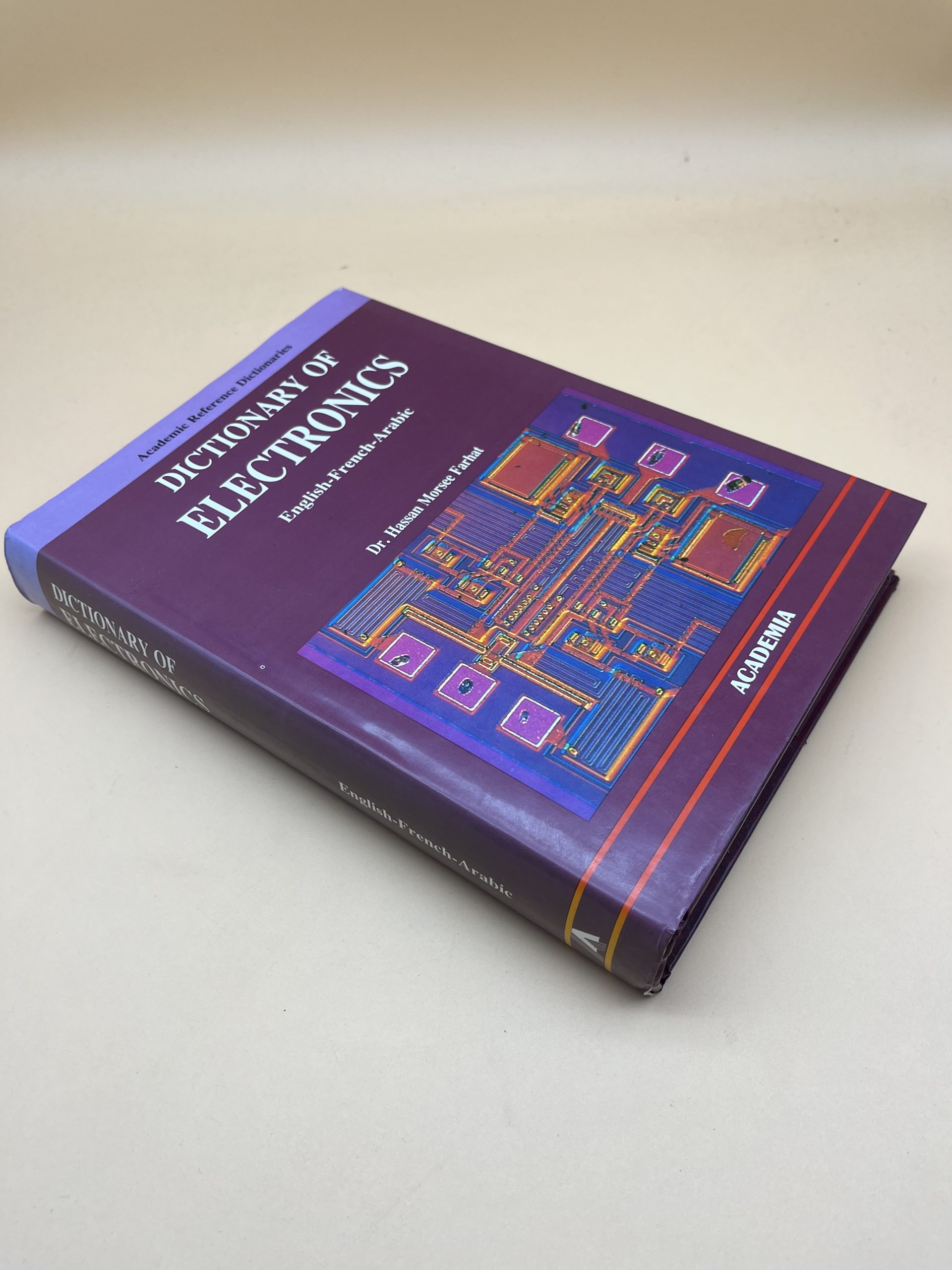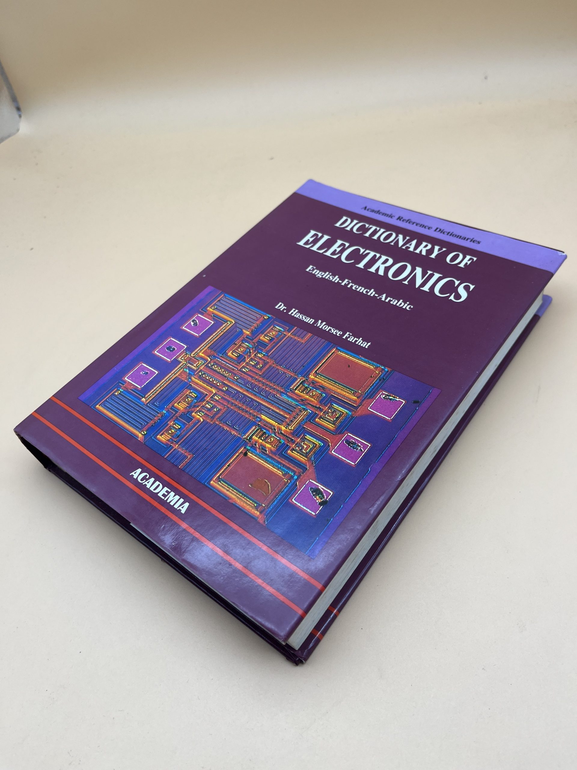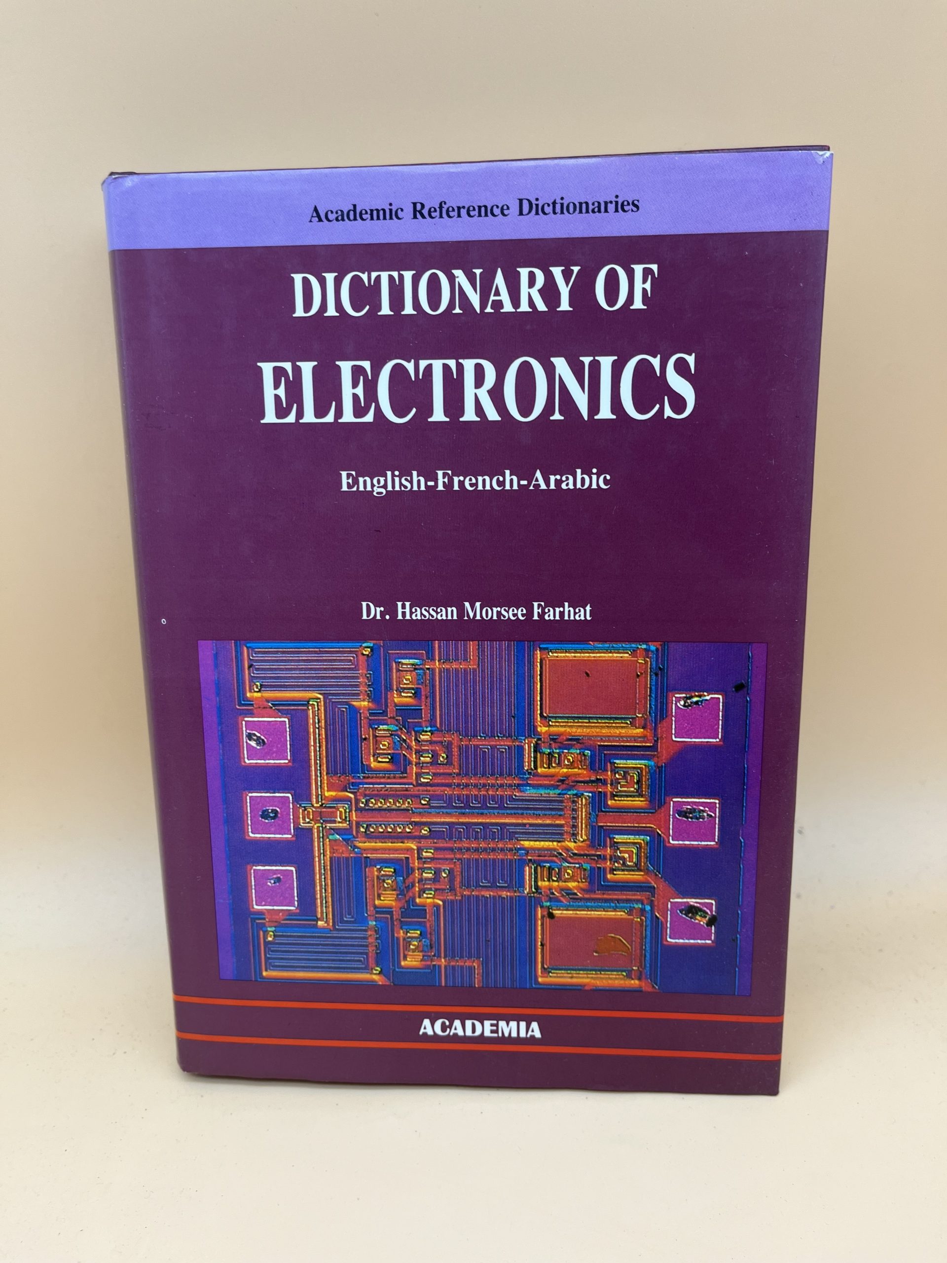 Dictionnaire technique « Dictionary of Electronics » (Anglais-Français-Arabe) par Dr. H. M. Farhat (Academia, 1992). Terminologie électronique trilingue.