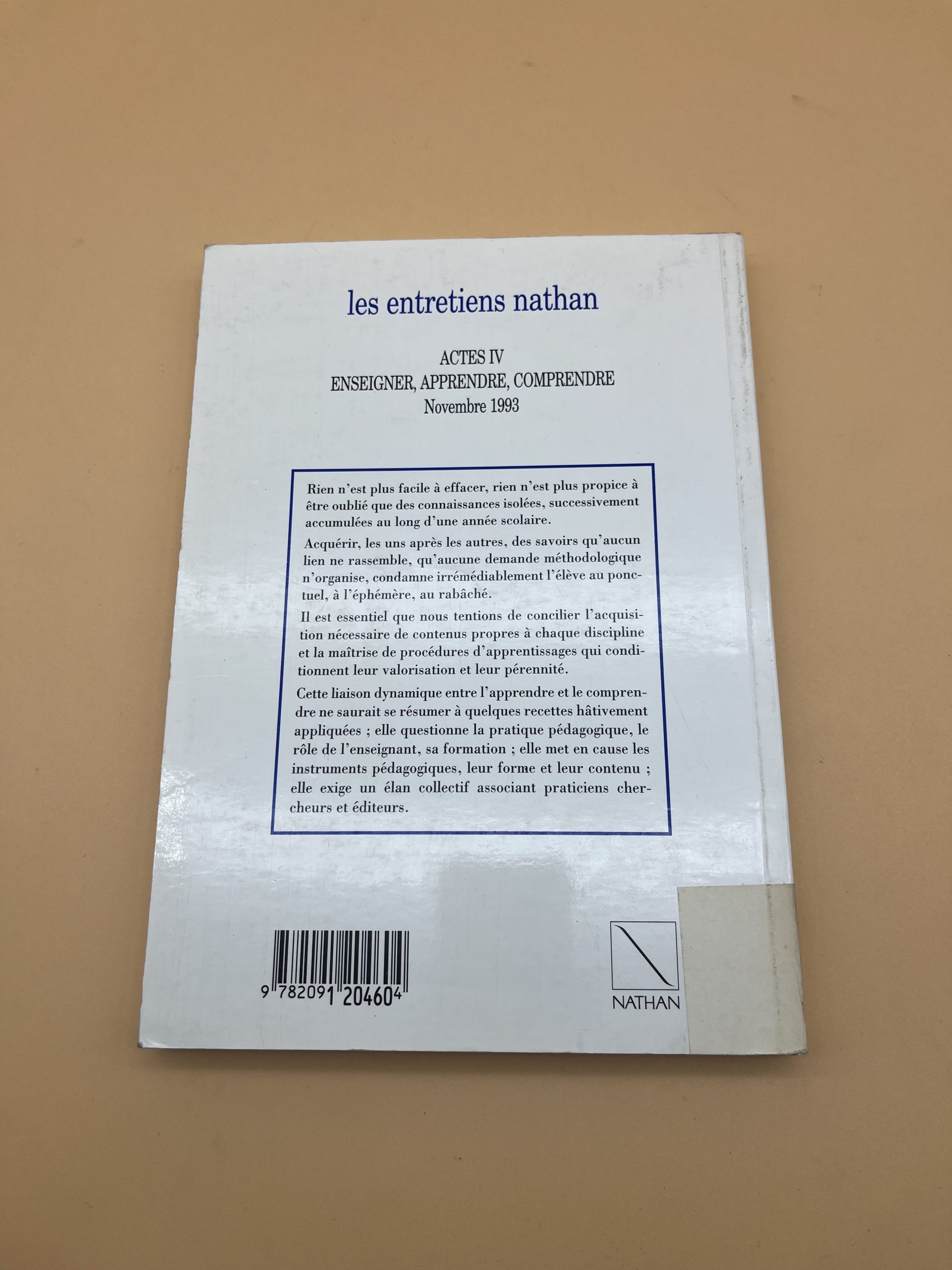 Actes des Entretiens Nathan (Actes IV) dirigés par Alain Bentolila sur les processus d’enseigner et d’apprendre.
