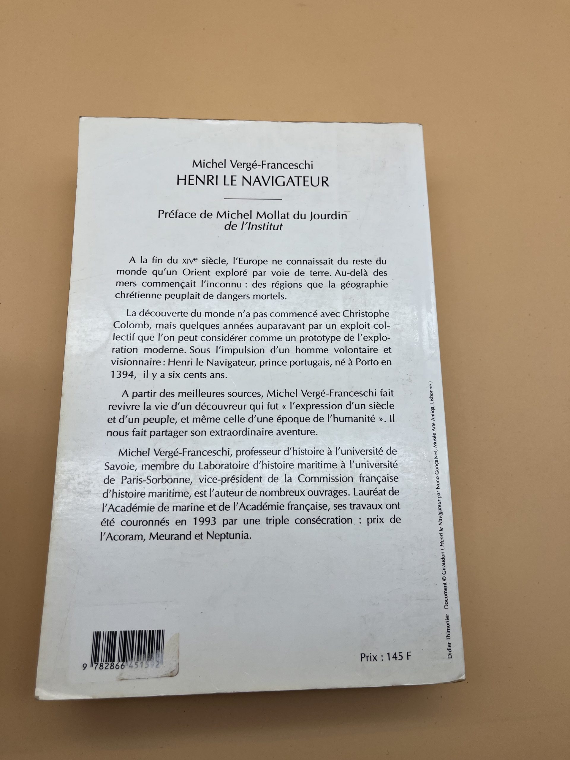 Biographie d’Henri le Navigateur, figure clé des découvertes portugaises; par Michel Vergé‑Franceschi, publiée au Félin (édition poche 19/05/2016, 336 p., 11,5×17,5 cm), existant aussi en tirage antérieur 2000; parfait pour histoire maritime.