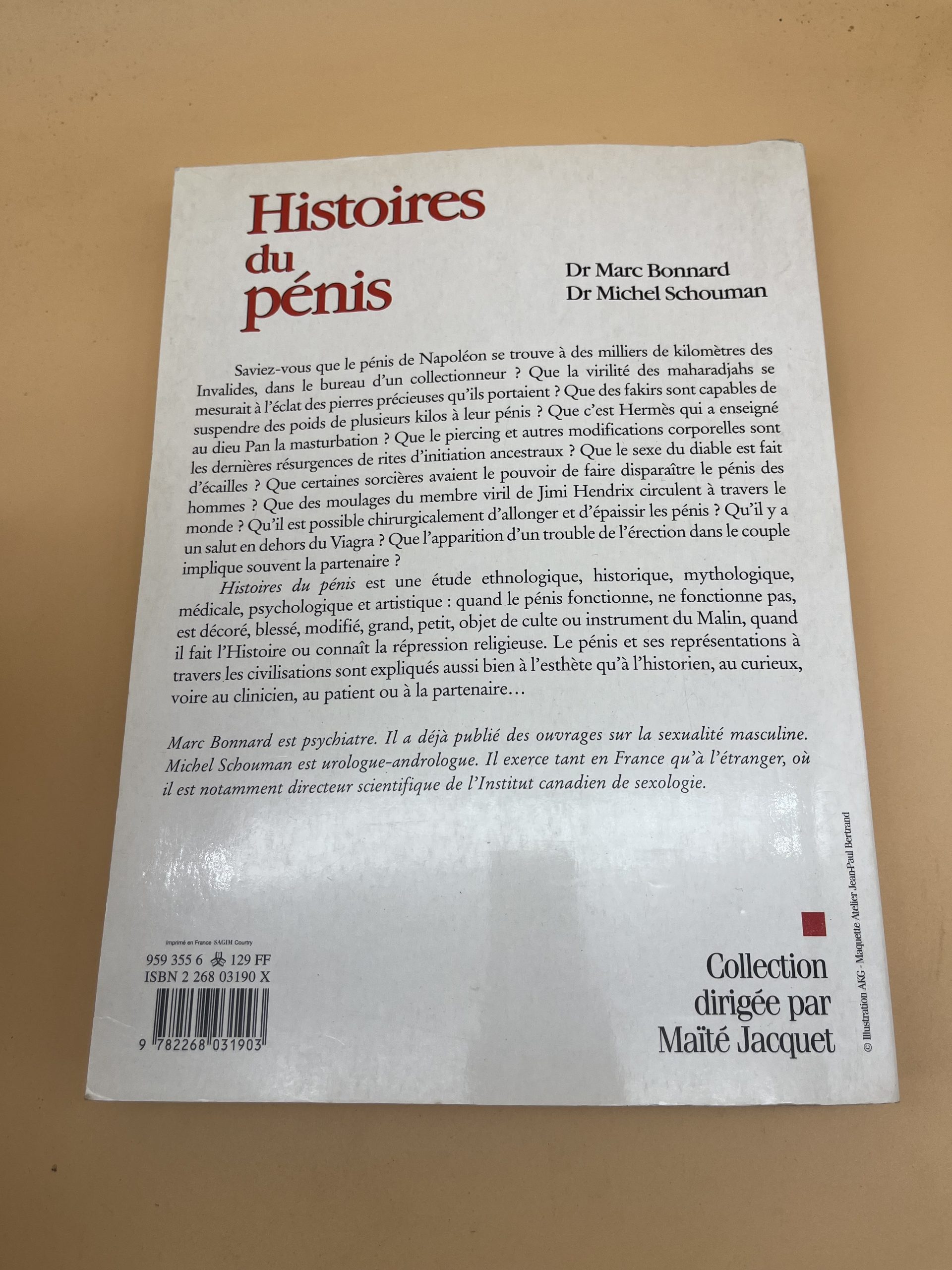 Histoires du pénis, Marc Bonnard & Michel Schouman, Éditions du Rocher. Essai d’histoire culturelle sur les représentations de l’organe masculin.