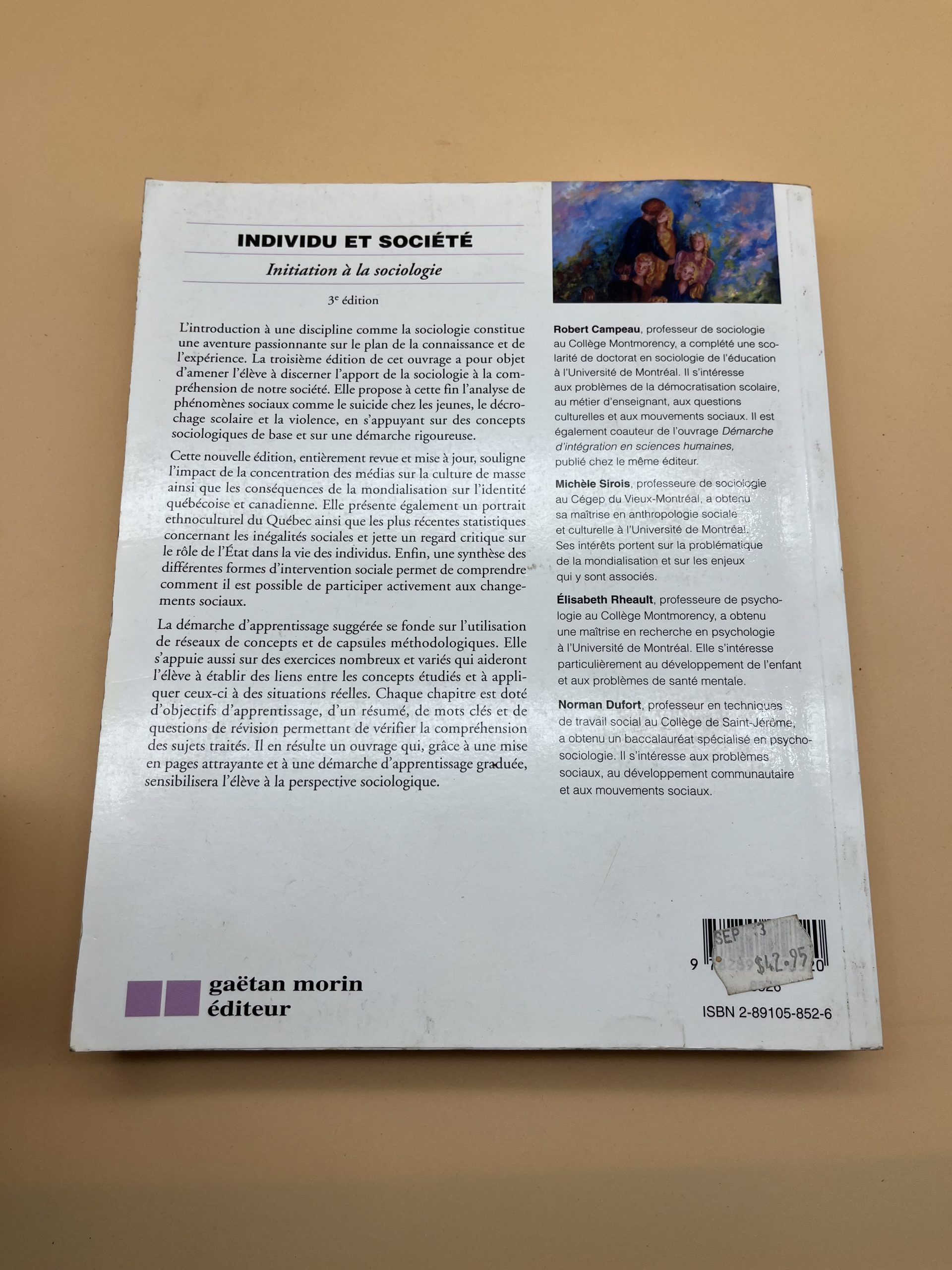 Manuel d’initiation clair et actuel sur les concepts et enjeux de la sociologie, 3e édition Gaëtan Morin.