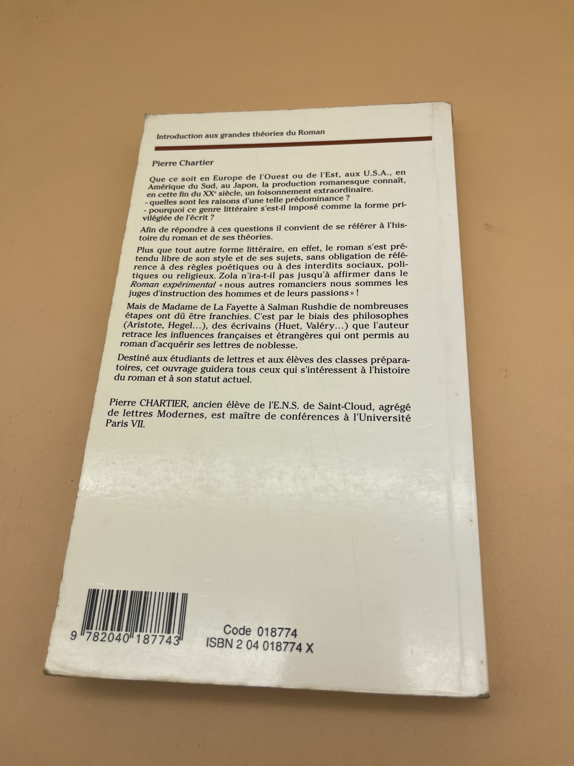 Manuel « Introduction aux grandes théories du Roman » de Pierre Chartier (1990). Éditions Bordas. Synthèse universitaire de référence sur le roman.