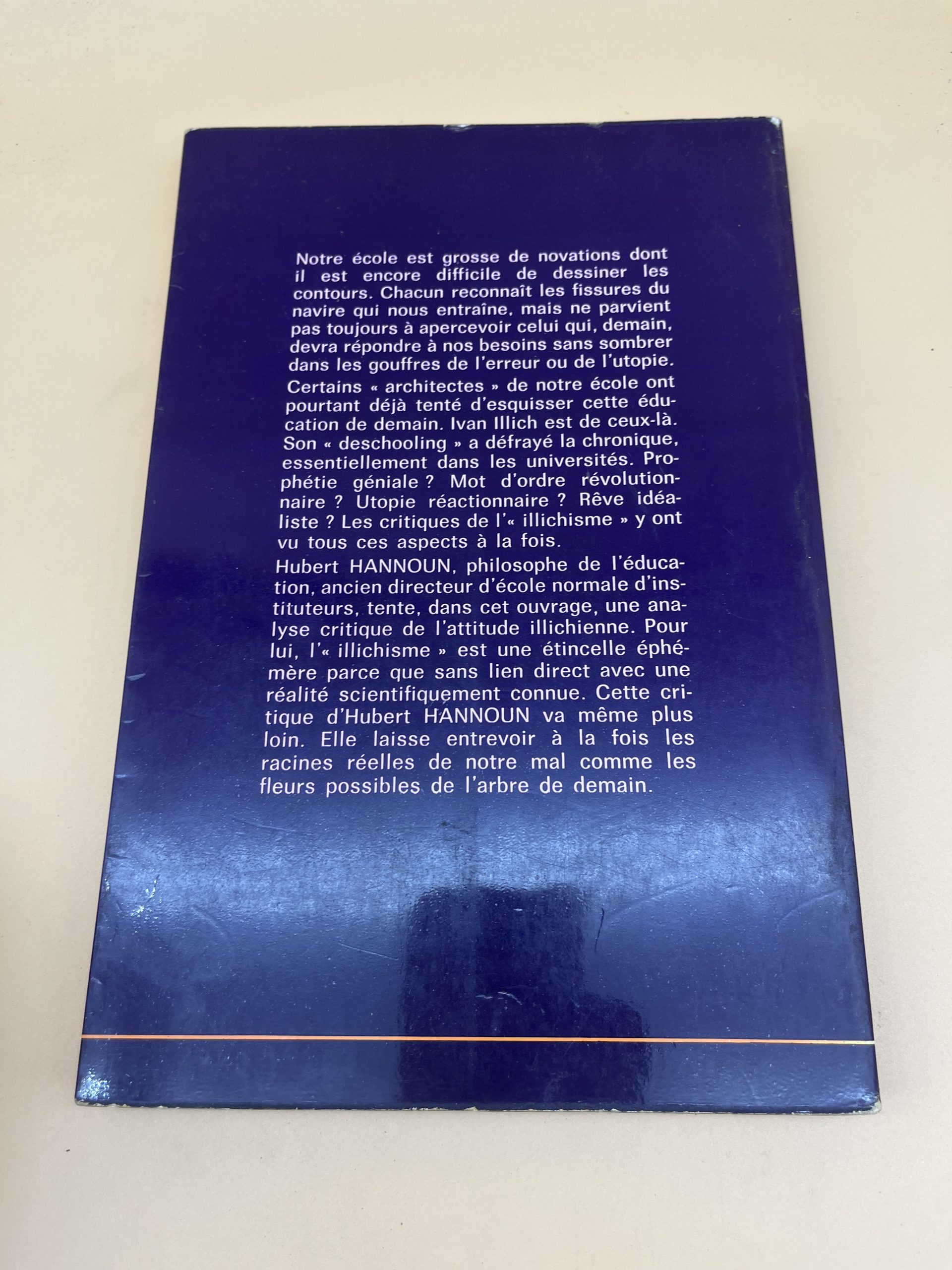 Analyse critique de la pensée d’Ivan Illich et de la société sans école par Hubert Hannoun. Essai de philosophie de l’éducation. Éditions ESF.