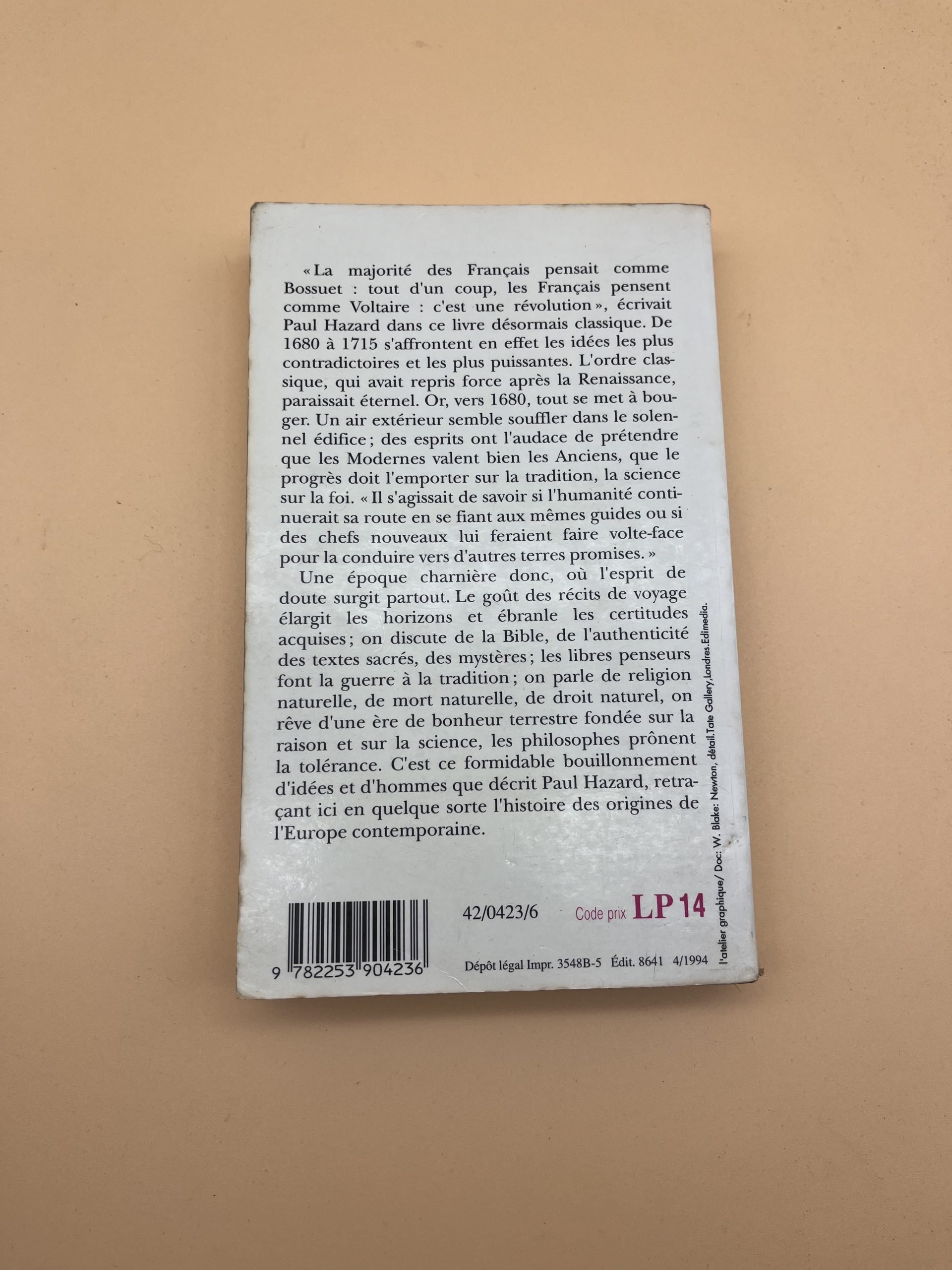 Dans cet ouvrage fondamental, Paul Hazard étudie les bouleversements intellectuels et culturels qui ont traversé l’Europe entre le XVIIe et le XVIIIe siècle. Il met en lumière l’apparition des idées nouvelles, la remise en cause des traditions et le développement du doute philosophique. Essentiel pour comprendre l’histoire des idées, les Lumières et la naissance de la modernité en Europe.