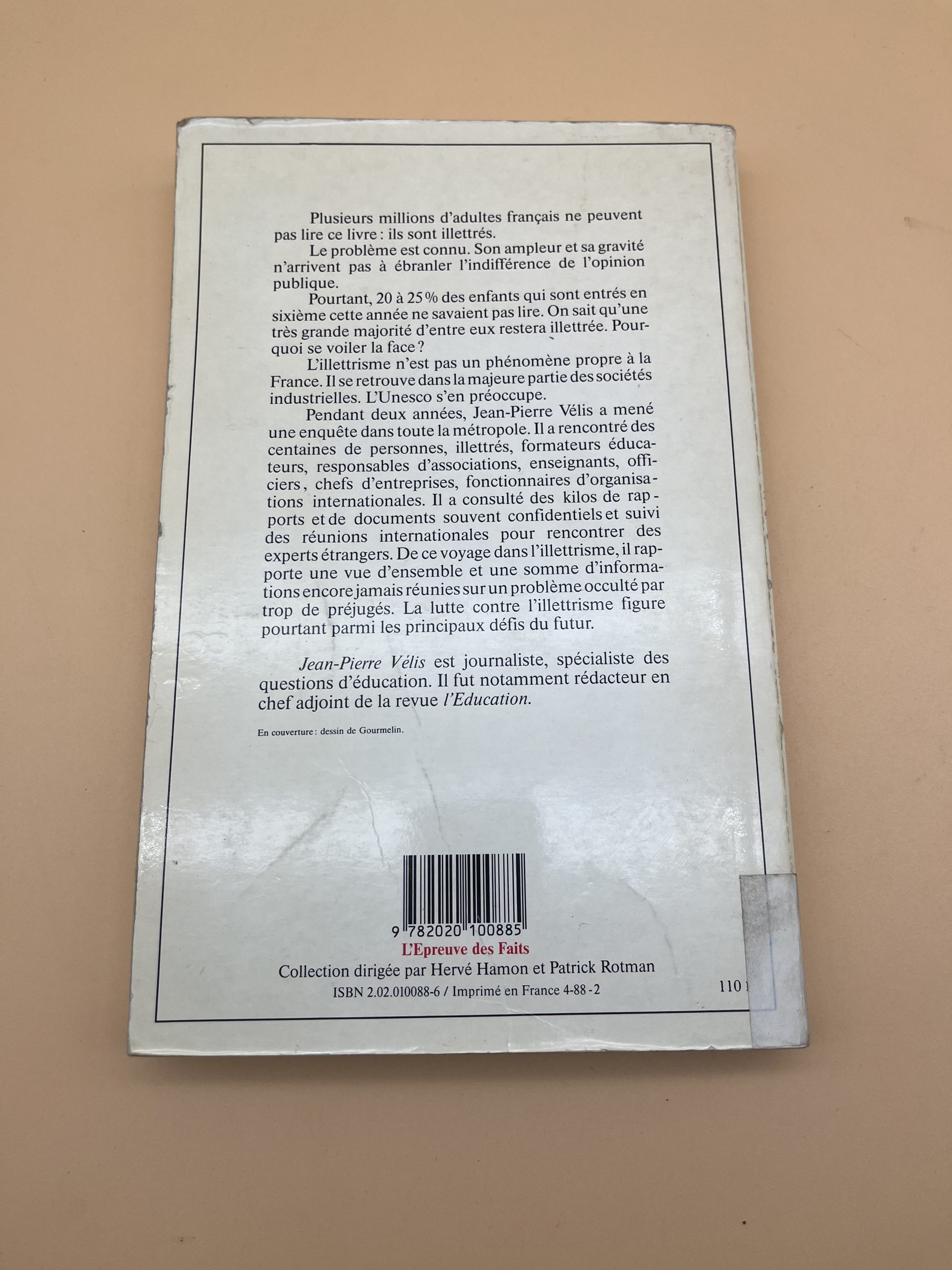 Description : Dans cet essai publié au Seuil, Jean‑Pierre Vélis analyse la réalité de l’illettrisme en France à la fin des années 1980, à partir de témoignages et d’études sociologiques. Le livre éclaire les enjeux de la lecture, de la formation des adultes et des politiques publiques, ressource précieuse pour formateurs, travailleurs sociaux et acteurs de la lutte contre l’exclusion.