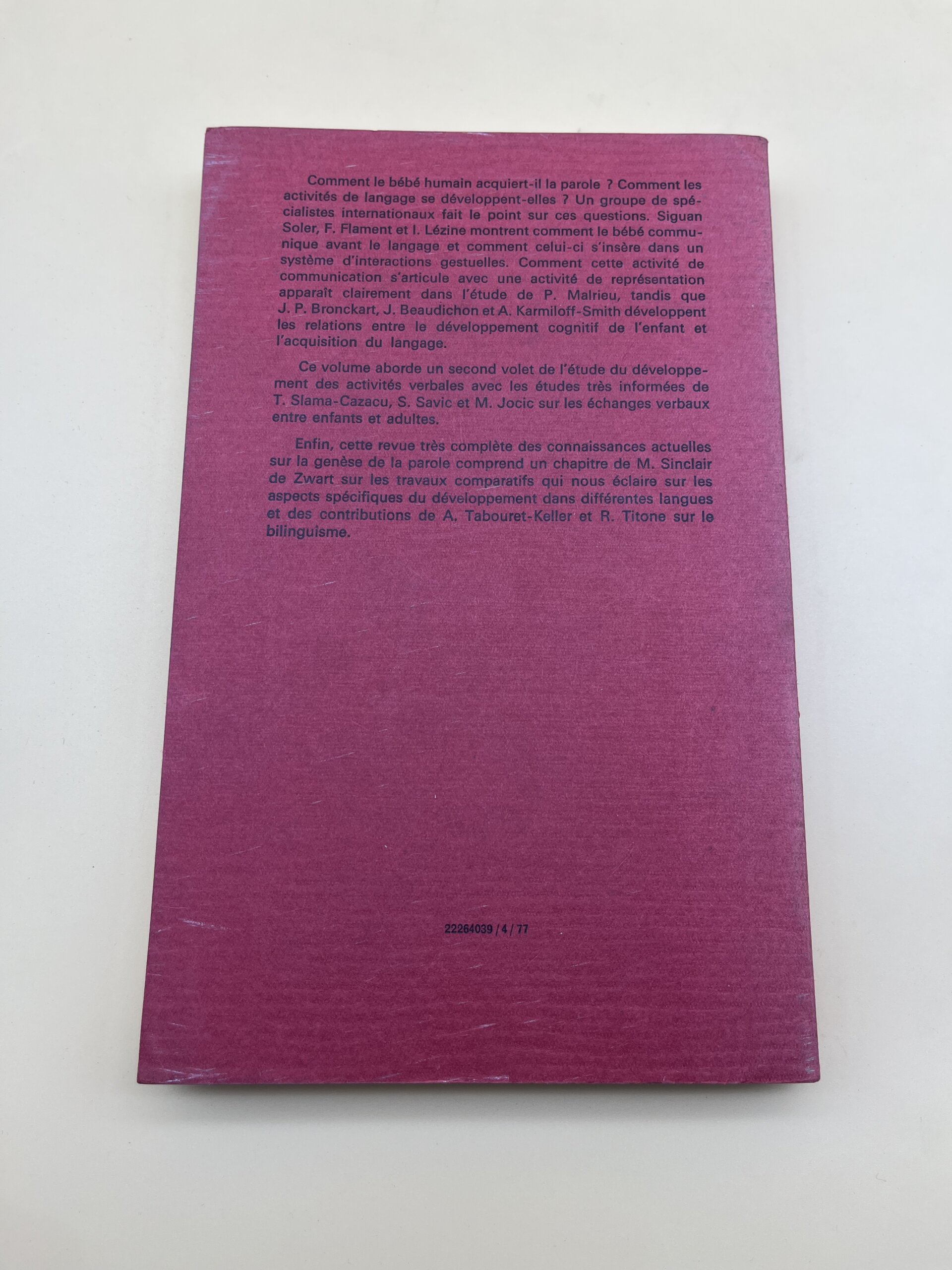 Ouvrage scientifique sur l’acquisition du langage et la naissance de la parole. Une référence pour linguistes et psychologues (Ed. PUF, 1977).