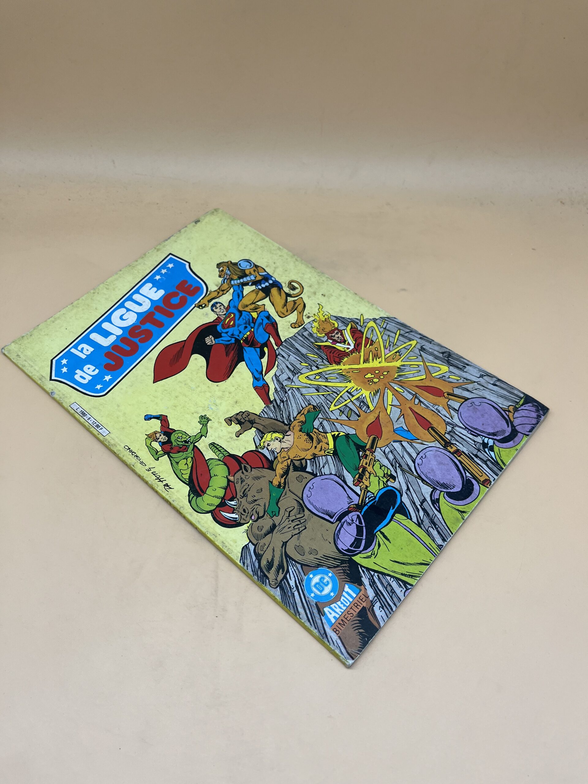 La Ligue de Justice avec Superman et les héros de l’univers DC. Bande dessinée vintage publiée par Arédit pour fans de comics et collectionneurs.