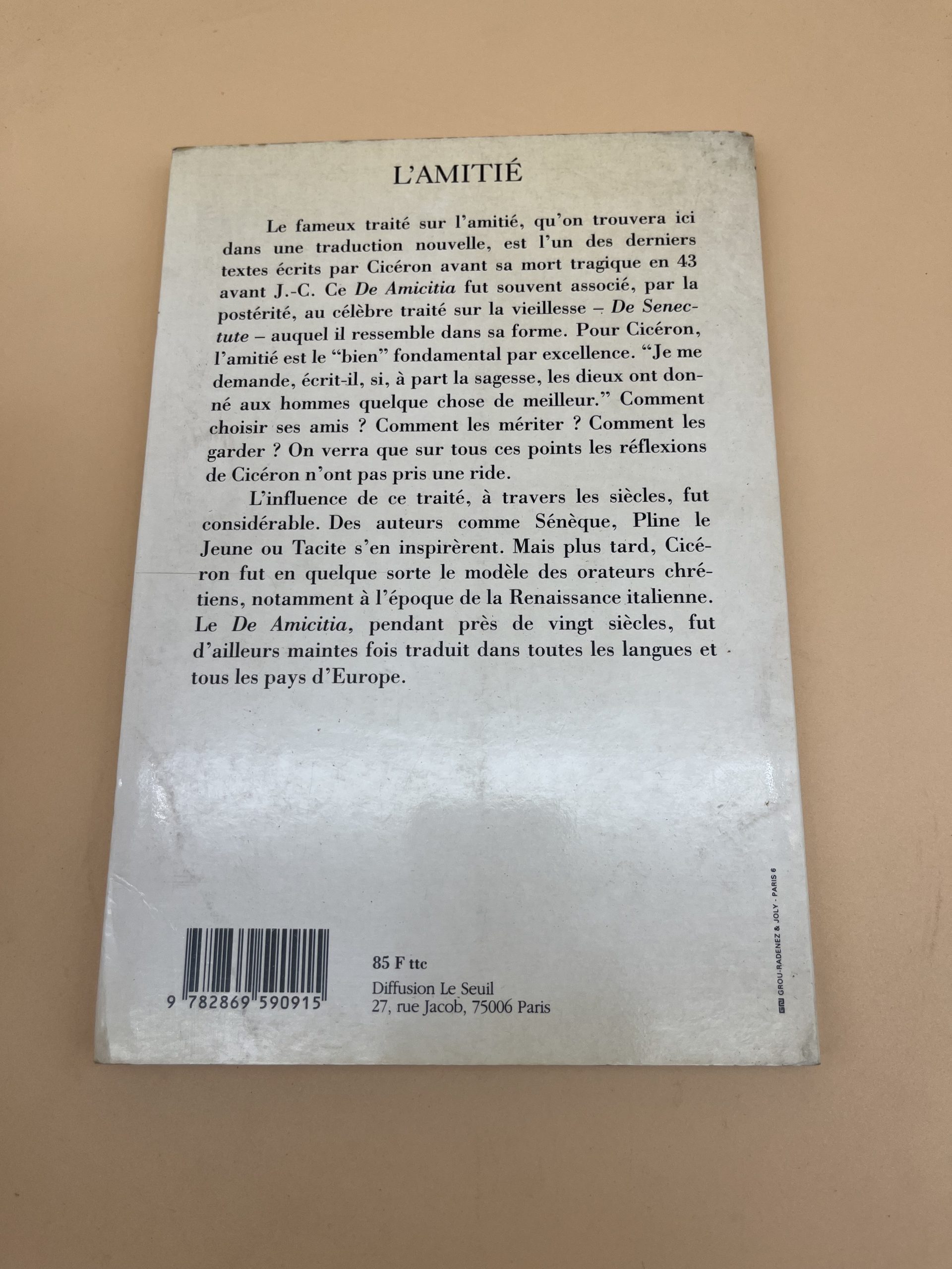 L’Amitié de Cicéron, traduction Christiane Touya, Arléa. Traité philosophique classique sur l’amitié et la vie bonne.