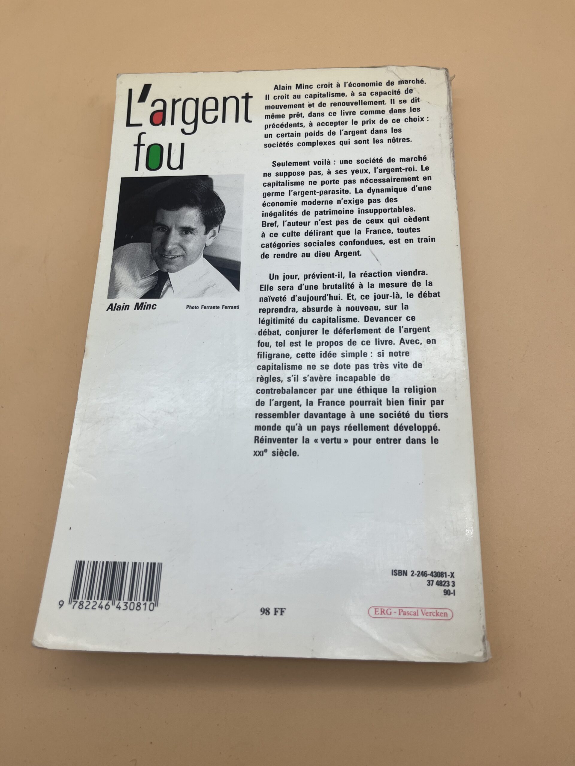 Essai d’Alain Minc sur les dérives du capitalisme financier et l’éthique économique. Grasset 1990. Livre d’occasion, analyse critique de l’argent roi.