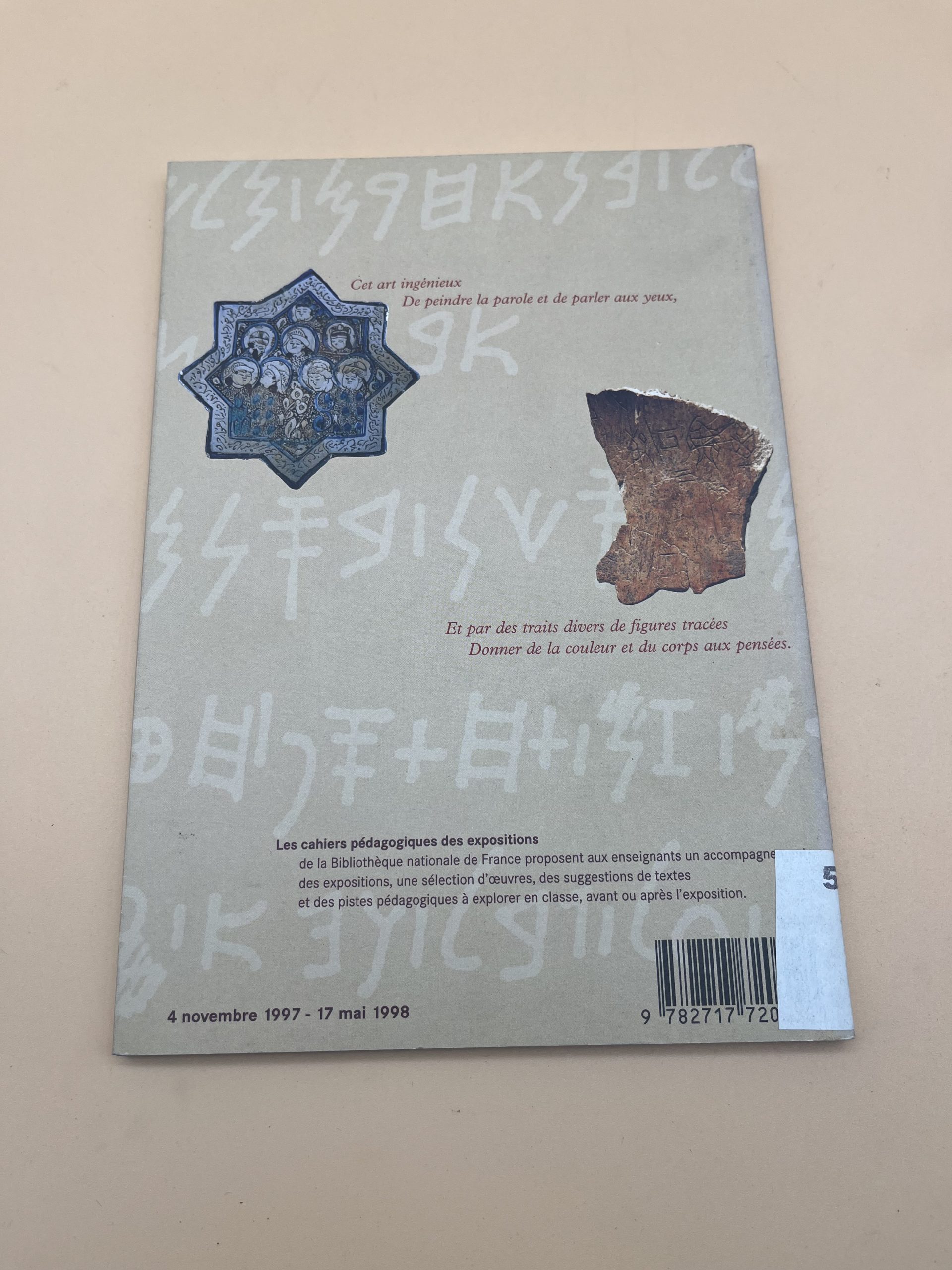 Description : Ce cahier pédagogique, réalisé par la Bibliothèque nationale de France, accompagne l’exposition sur la naissance des écritures. Richement illustré, il propose des pistes d’exploitation pour la classe autour de l’histoire de l’écrit (Mésopotamie, Égypte, Chine…), ressource précieuse pour les projets culturels et l’histoire des arts.