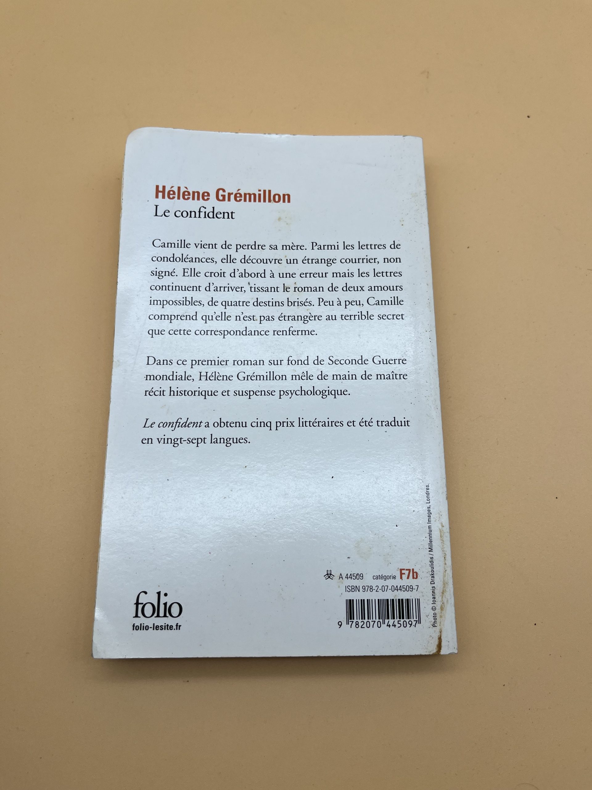 Roman à suspense d’Hélène Grémillon, correspondances et secrets; édition Folio 2012.