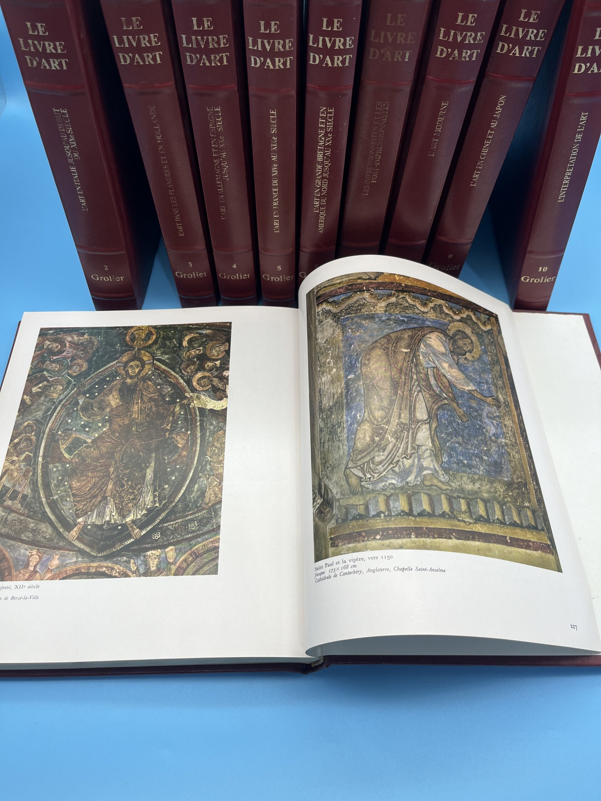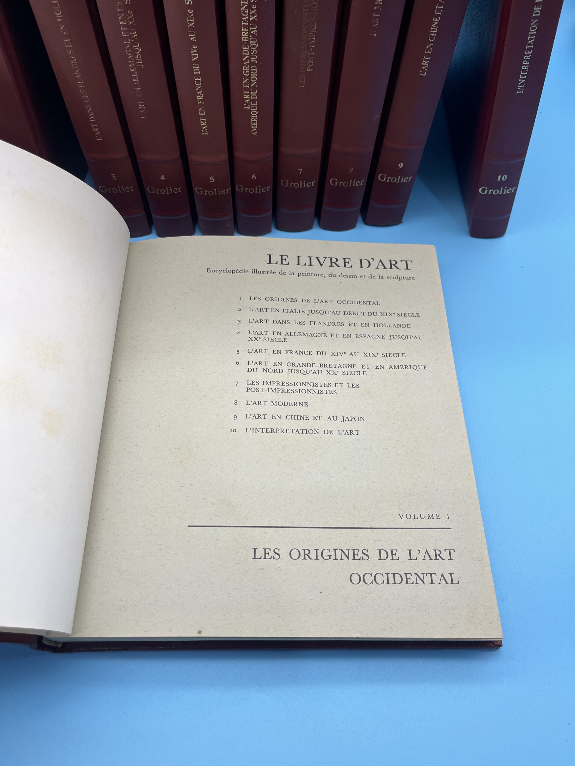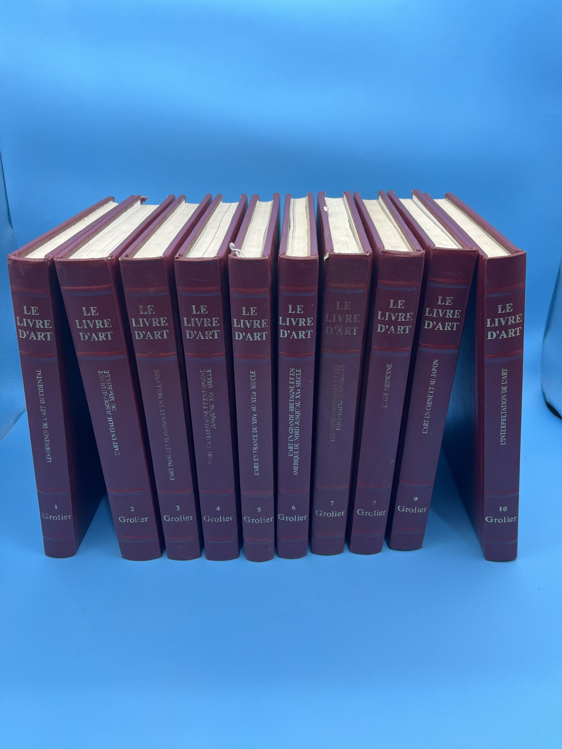 Encyclopédie artistique majeure en 10 volumes reliés « Le Livre d’Art » : L’Art en Hollande, Italie, France, Angleterre, Allemagne, Espagne, peinture moderne, sculpture, art oriental, primitifs. Richement illustré reproductions couleur, analyses historiens d’art sur maîtres (Rembrandt, Michel-Ange, Picasso). Beaux livres français référence histoire de l’art occidental pour étudiants, décorateurs, collectionneurs livres illustrés grand format, bibliothèque culture artistique peinture sculpture classique moderne.