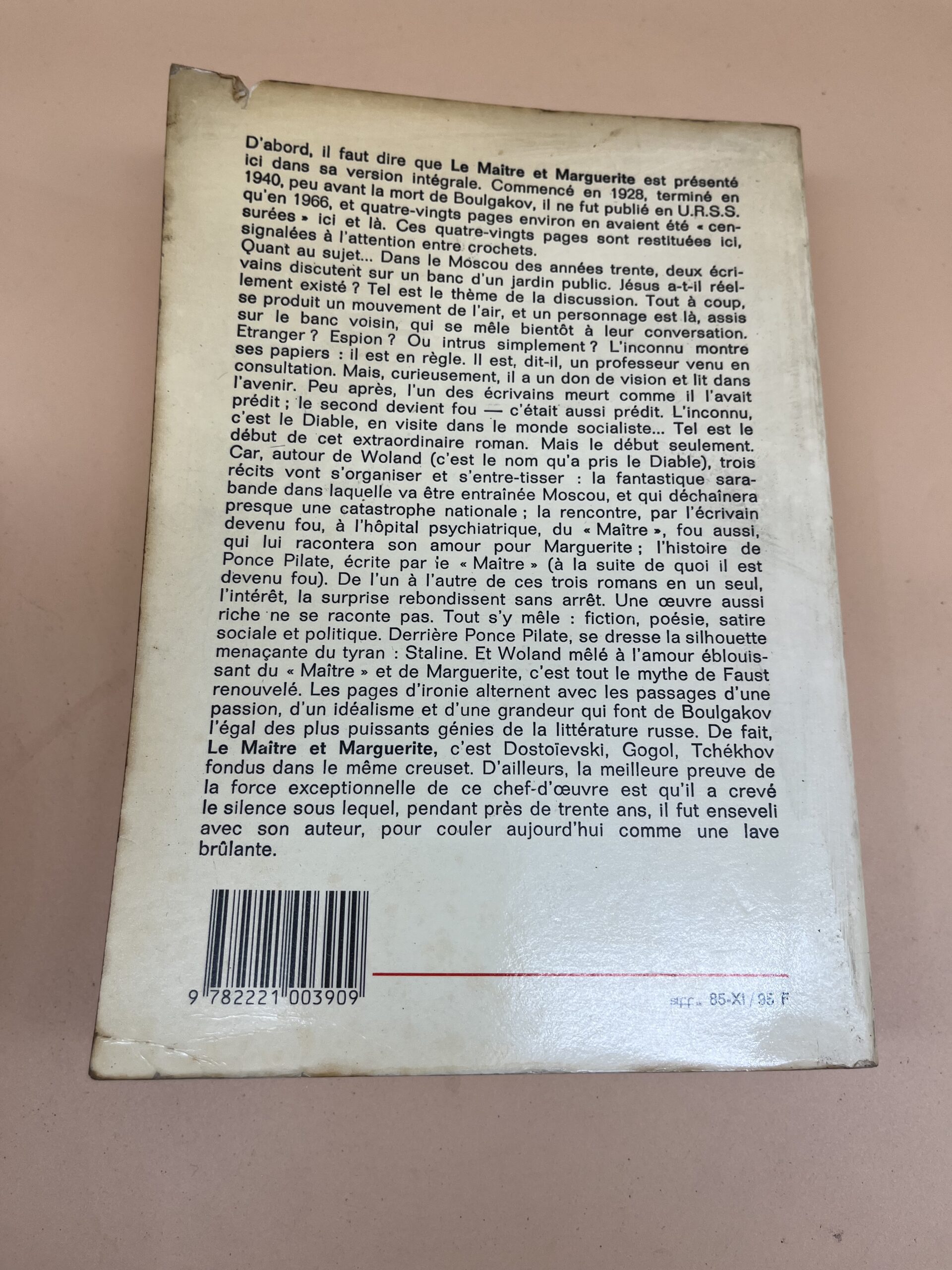 Le Maître et Marguerite de Mikhaïl Boulgakov est un chef-d’œuvre de la littérature russe mêlant fantastique et satire. Disponible sur Bouquiniste Maroc.