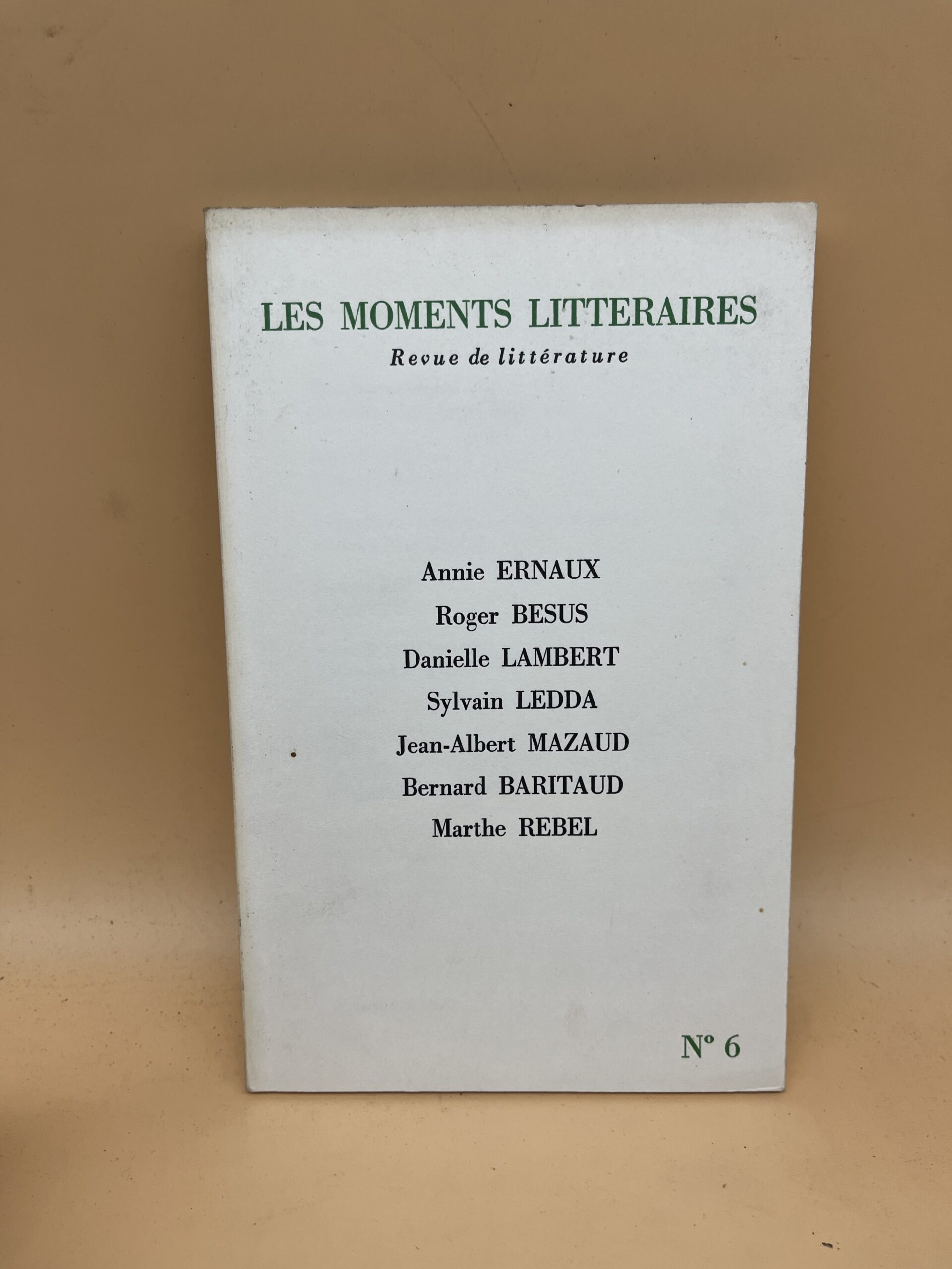 Numéro 6 de Les Moments Littéraires, comprenant une contribution d’Annie Ernaux. Revue littéraire française idéale pour amateurs de littérature contemporaine.
