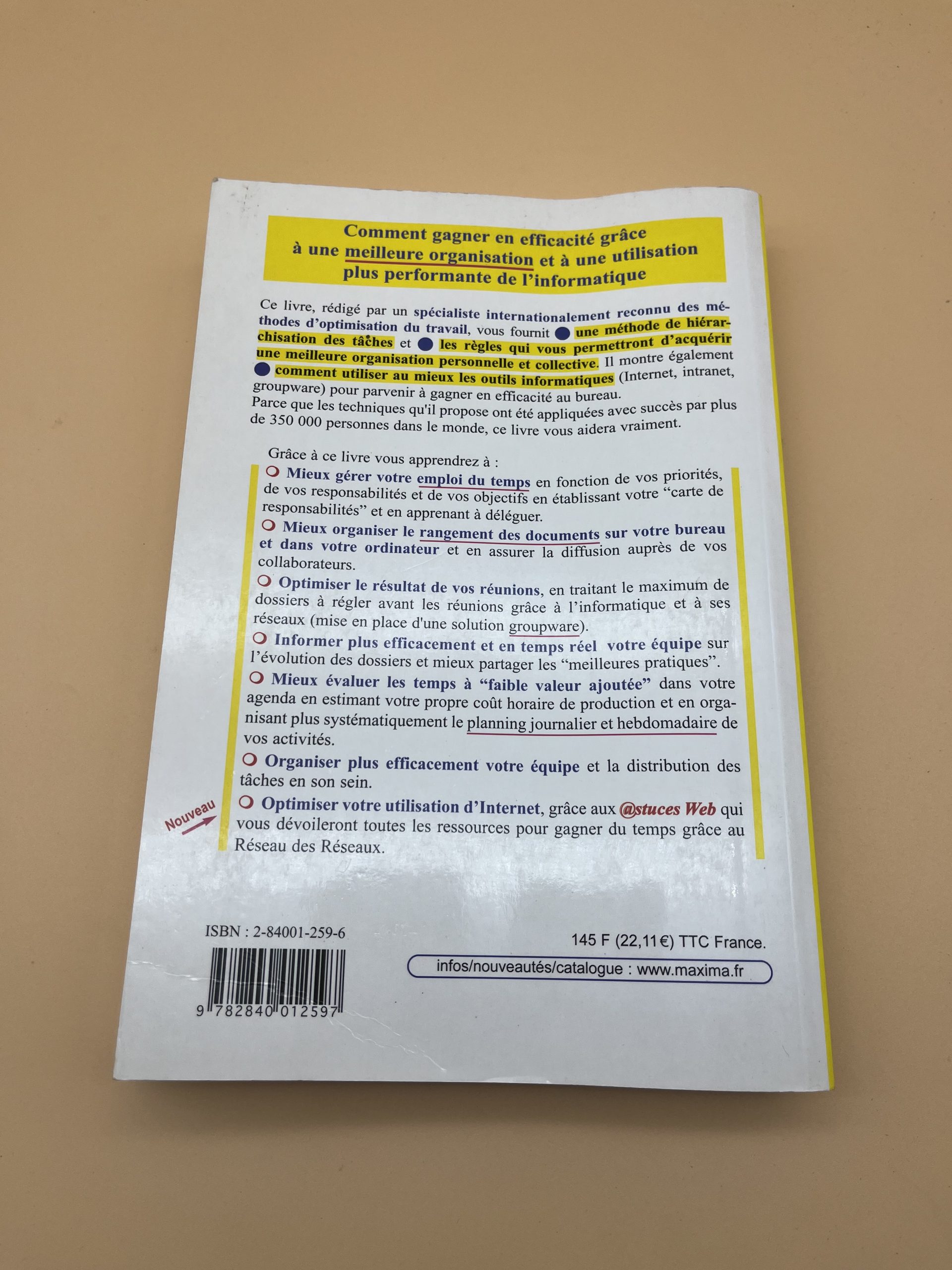 Description: Bruno Savoyat livre des méthodes pragmatiques de productivité personnelle et d’organisation du travail, avec astuces web et nouvelles technologies pour gagner du temps et améliorer la qualité du travail au quotidien. Publication Maxima, destinée aux entrepreneurs et équipes qui visent une efficacité durable au bureau et en mobilité.