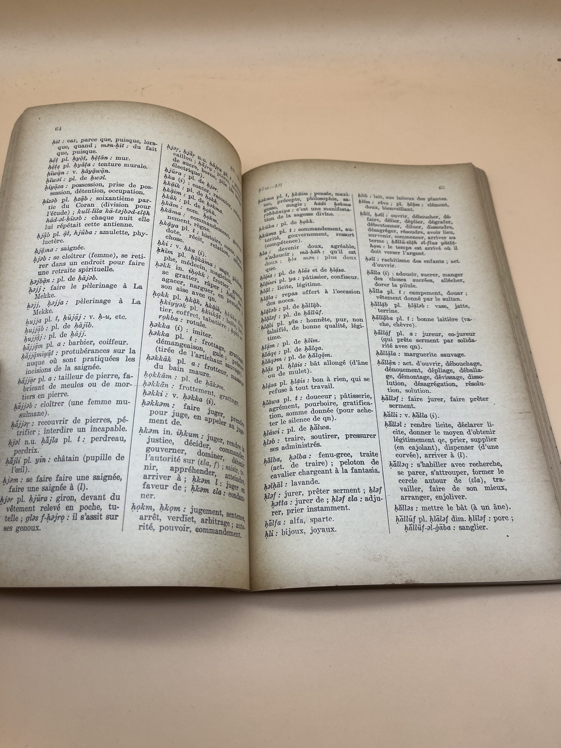 Lexique pratique destiné à faciliter la compréhension du dialecte marocain vers le français. Ouvrage pédagogique rare imprimé au Maroc, utile pour linguistes, historiens et collectionneurs de documents linguistiques du Protectorat.