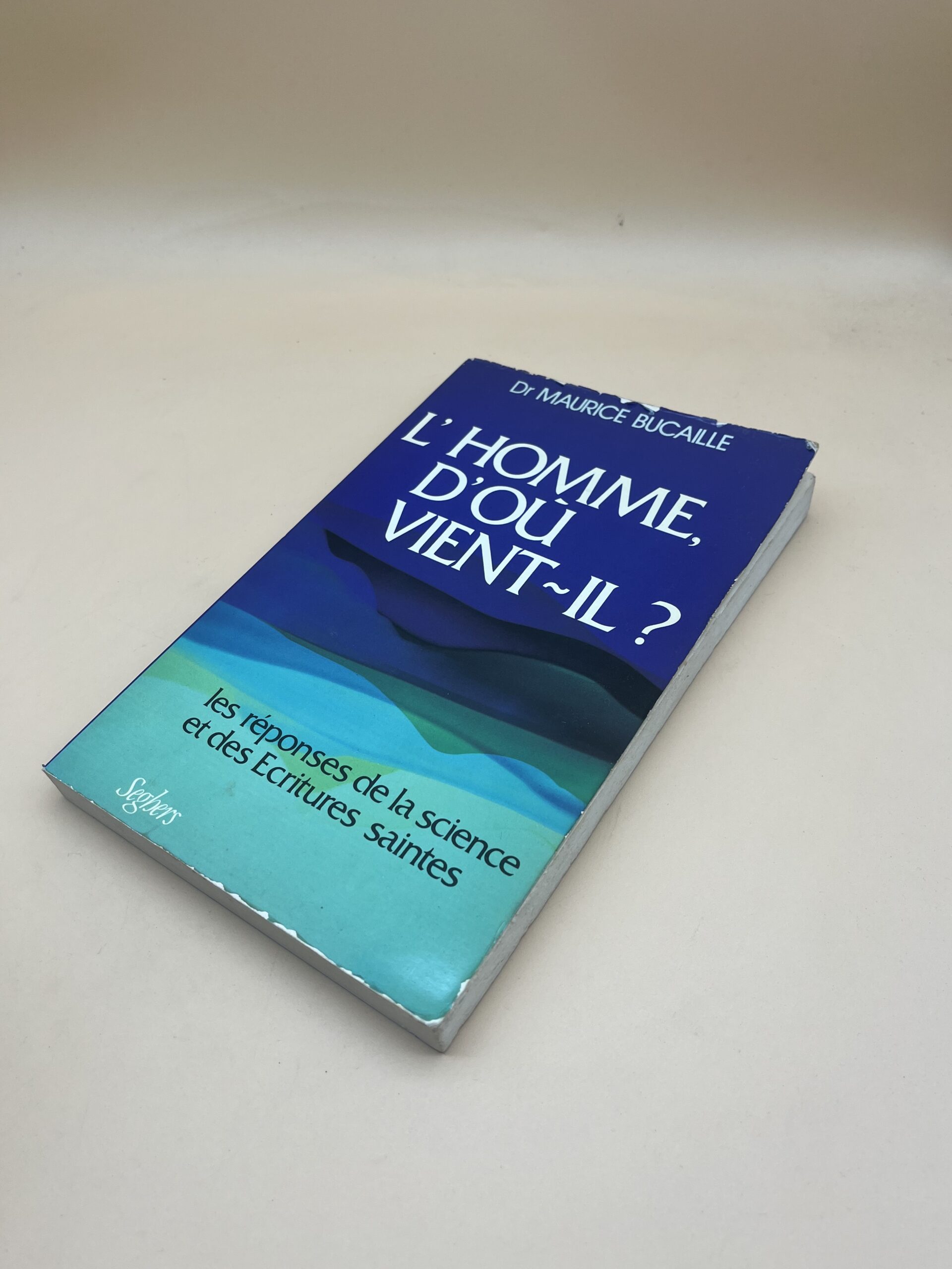 Ouvrage du Dr Bucaille confrontant science et religion sur l’origine de l’homme. Analyse des Écritures saintes et découvertes scientifiques. Seghers 1980.