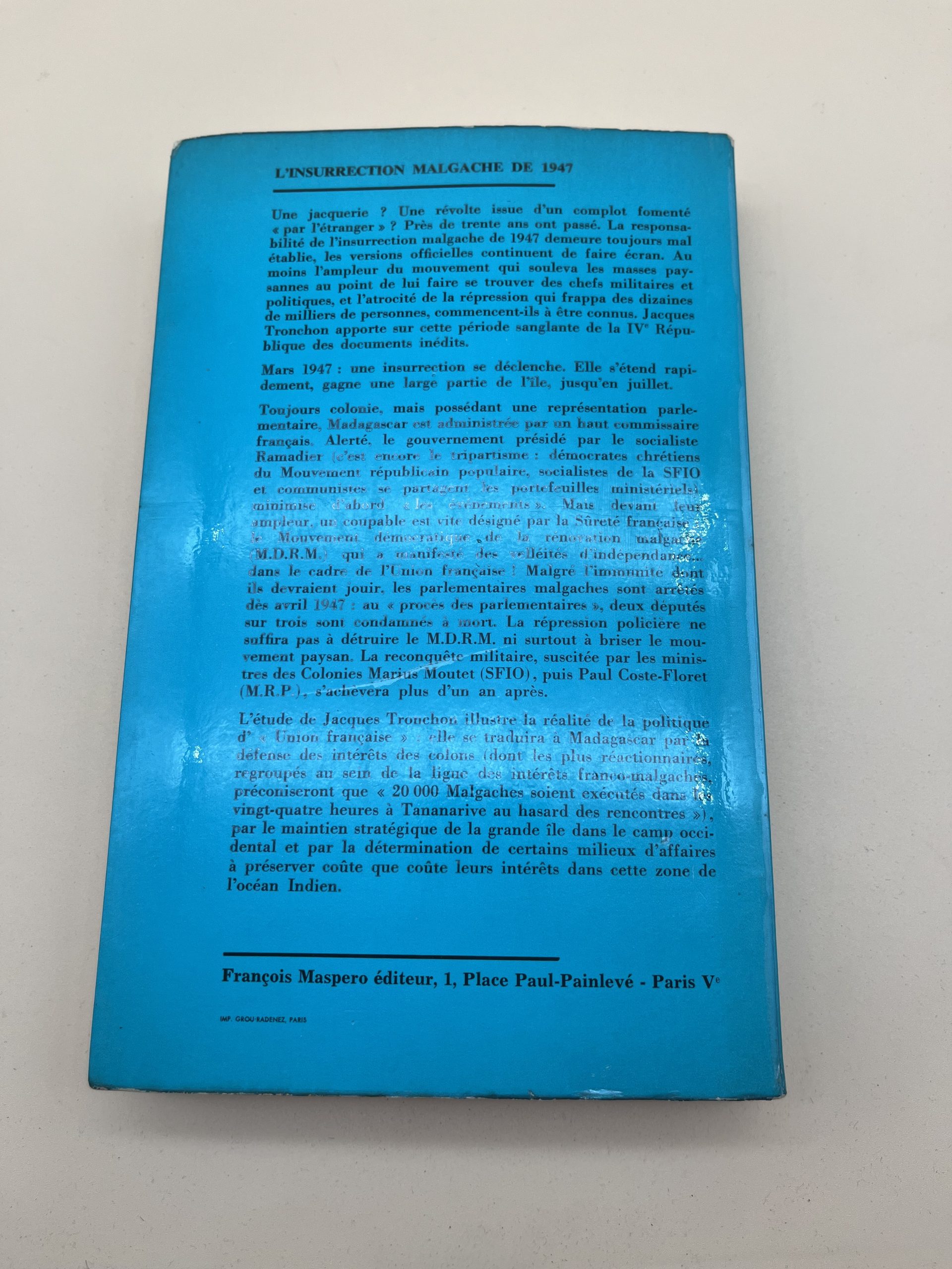 L’auteur retrace la grande insurrection malgache contre la colonisation française en 1947, ses causes, son déroulement et ses conséquences sur la société malgache et l’histoire coloniale. Un ouvrage essentiel pour comprendre les mouvements de libération en Afrique.