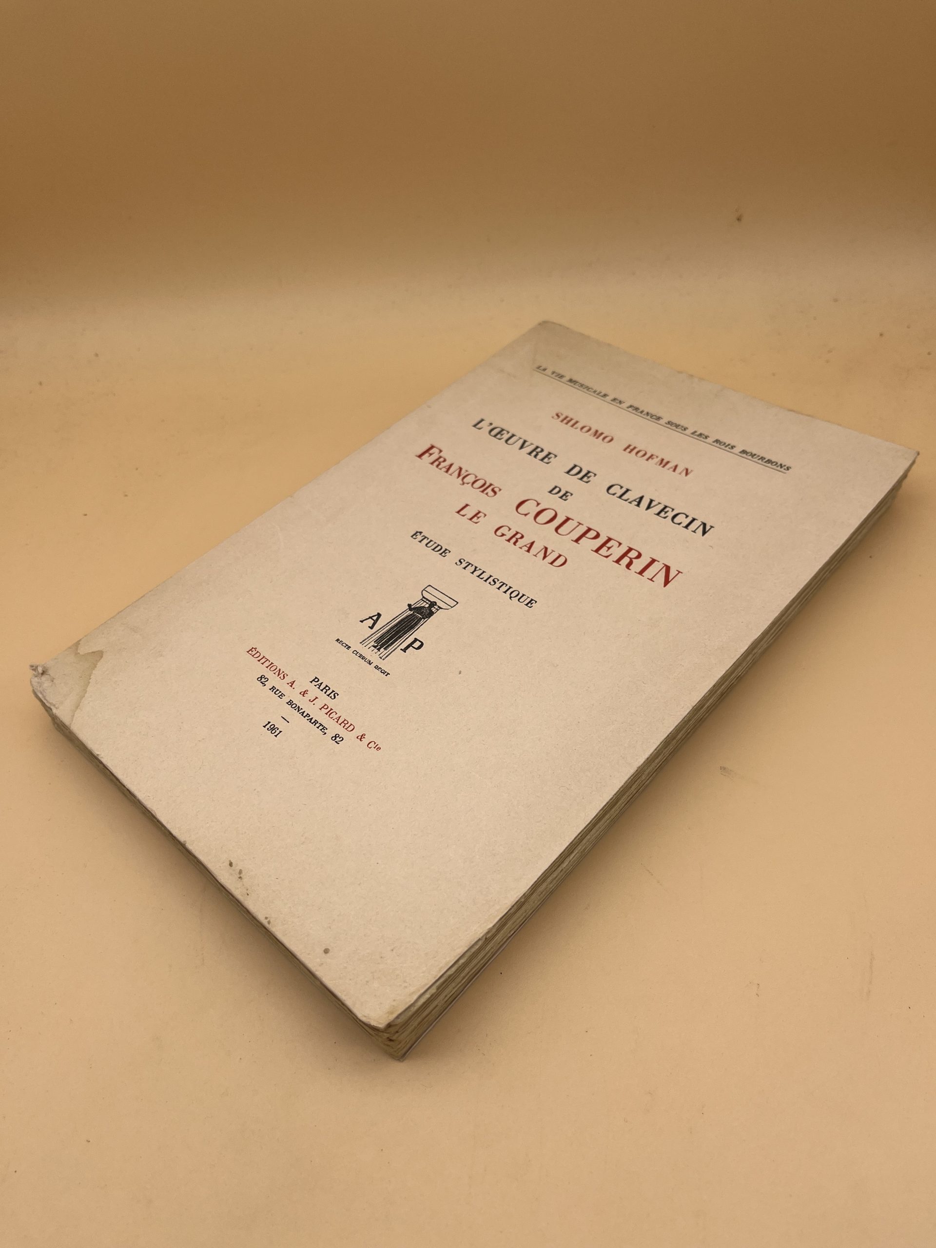 Étude musicologique « L’œuvre de clavecin de François Couperin » par Shlomo Hofman (1961). Éditions Picard. Livre rare pour mélomanes et spécialistes.