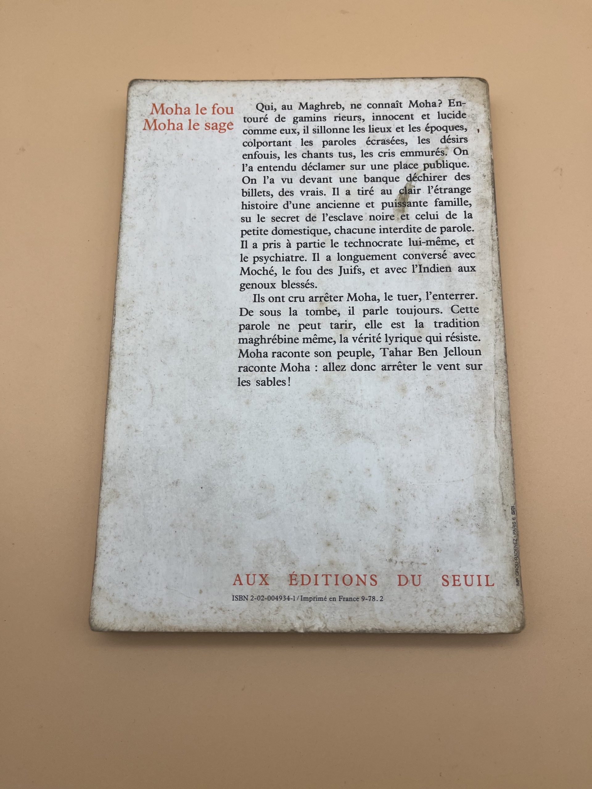 Moha le fou, Moha le sage – roman culte de Tahar Ben Jelloun, édition Seuil​