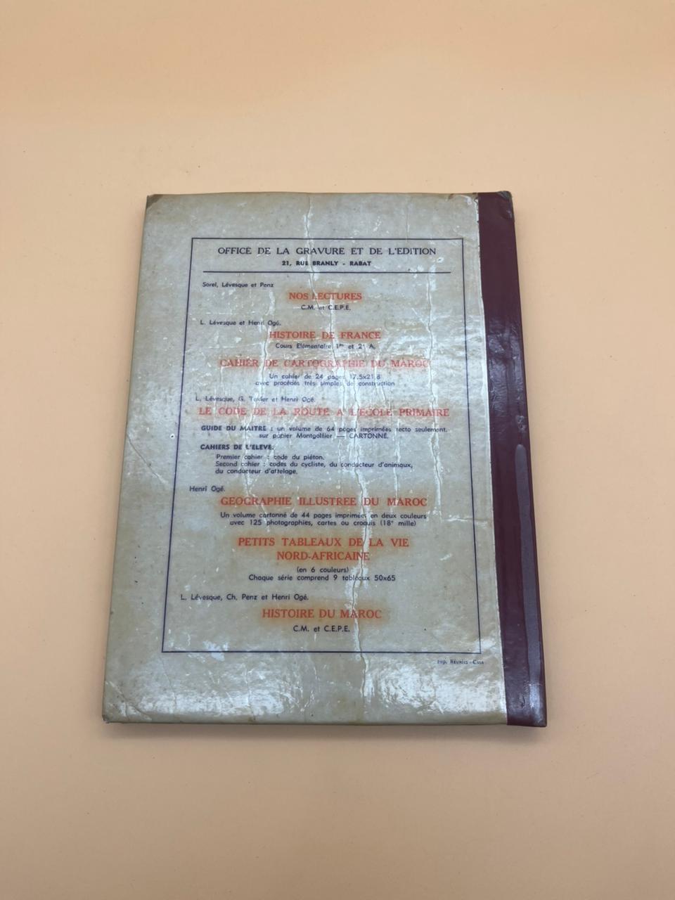 Manuel scolaire ancien reliant les programmes d’histoire de France et du Maroc, leçons illustrées, activités et repères chronologiques pour débutants.