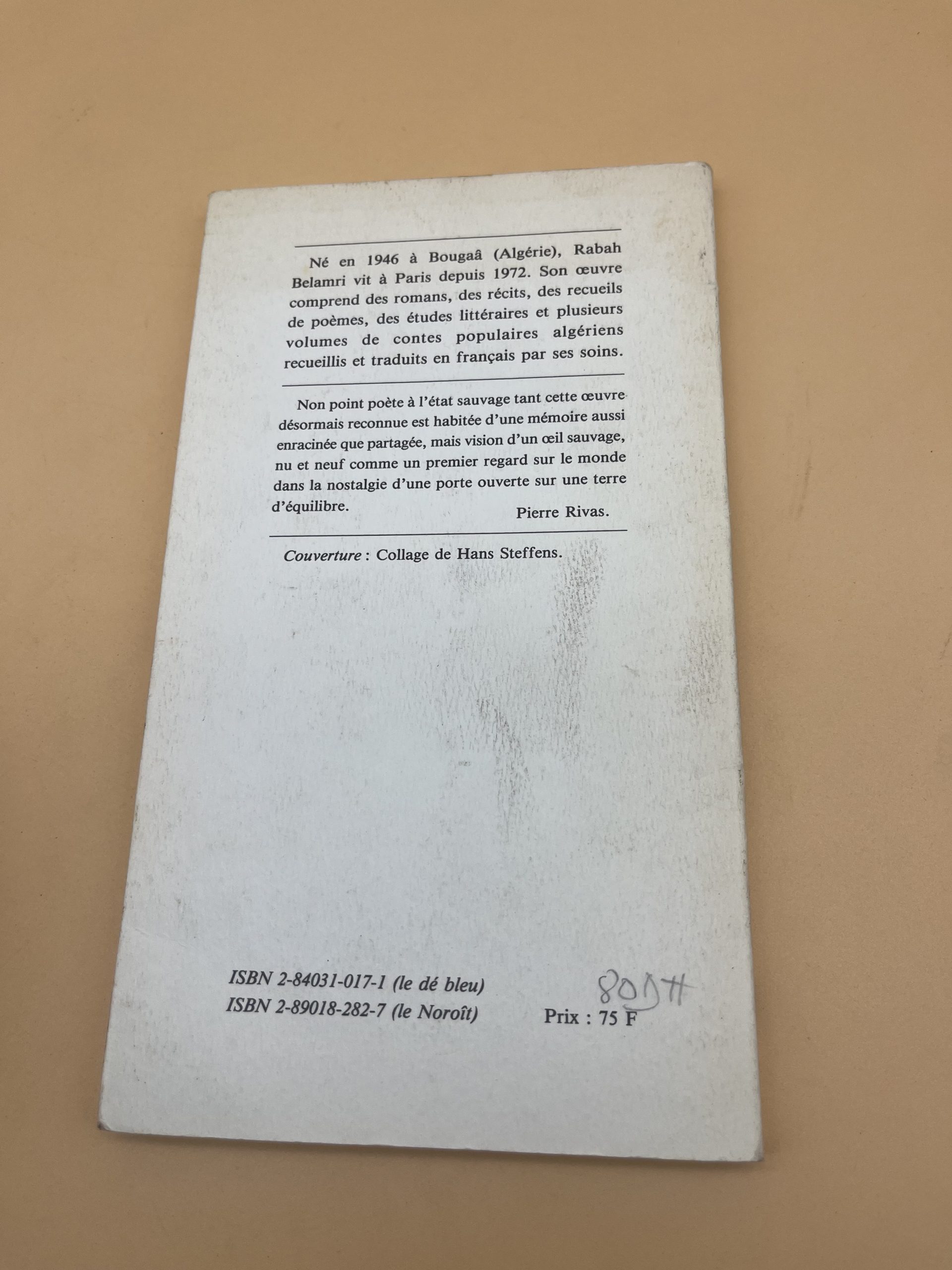 Pierres d’équilibre de Rabah Belamri, poésie algérienne francophone, éditions Le Dé bleu / Le Noroît, 1993. Recueil rare et méditatif.