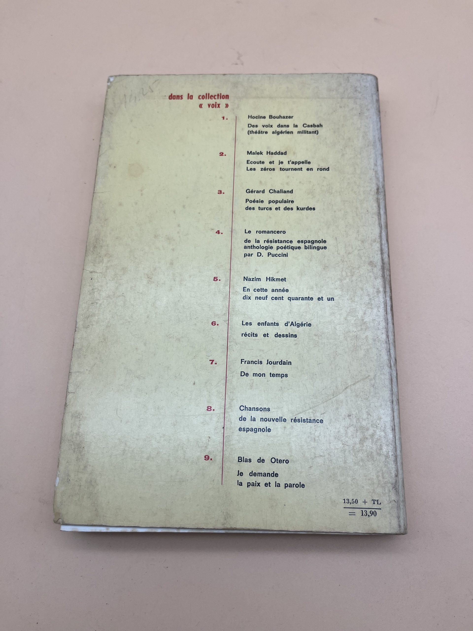 Plongez au cœur de la tradition orale berbère avec cette anthologie rare de poésie kabyle. Recueillis et traduits par Pierre Savignac, ces textes témoignent de la richesse culturelle, de la sagesse et de la sensibilité du peuple kabyle. Publié chez François Maspero, ce livre est un document ethnographique et littéraire précieux, une fenêtre ouverte sur l’âme d’une culture ancestrale toujours vivante.
