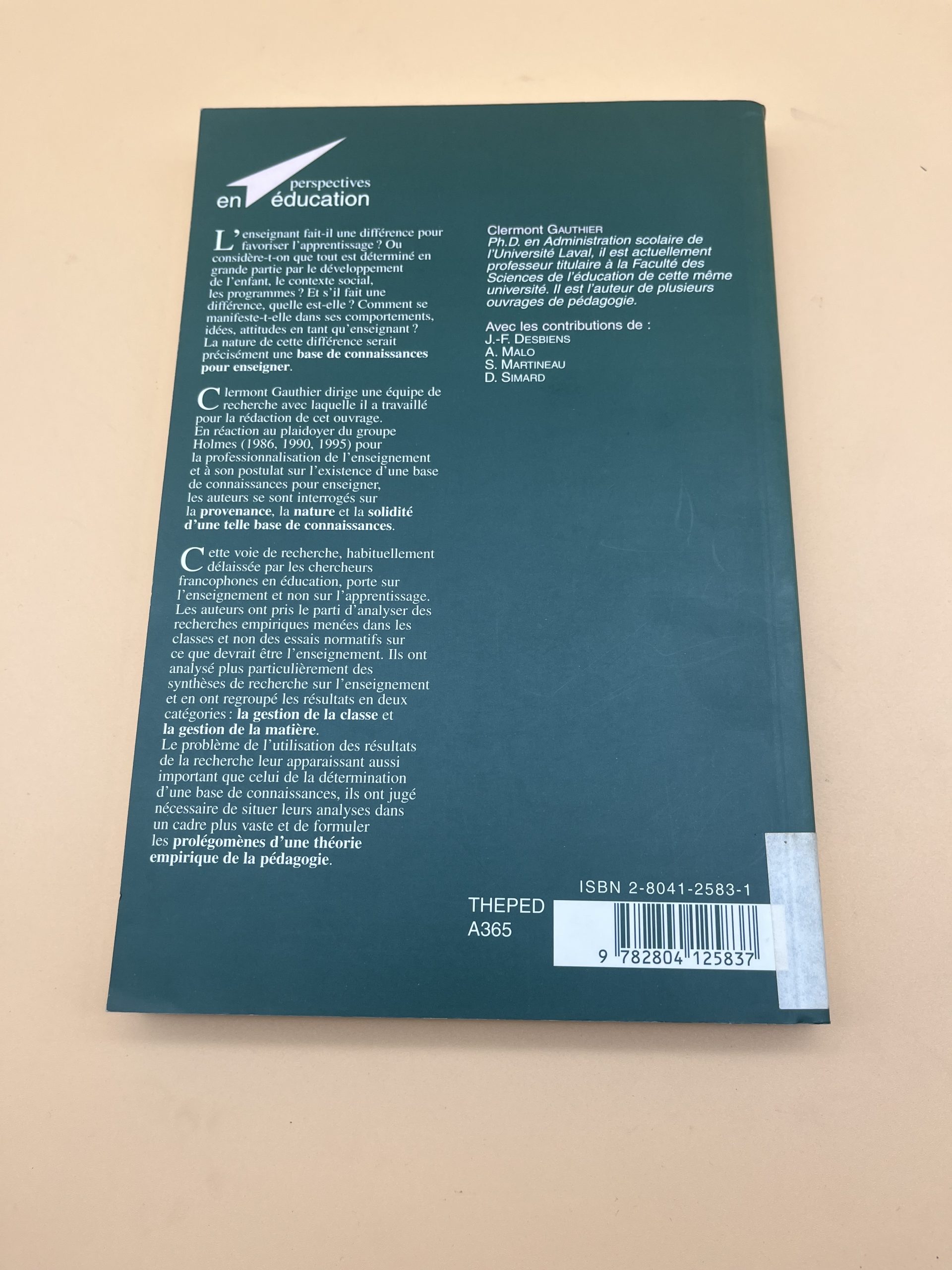 Ouvrage fondamental dirigé par Clermont Gauthier (De Boeck) sur les savoirs enseignants et l’efficacité pédagogique.