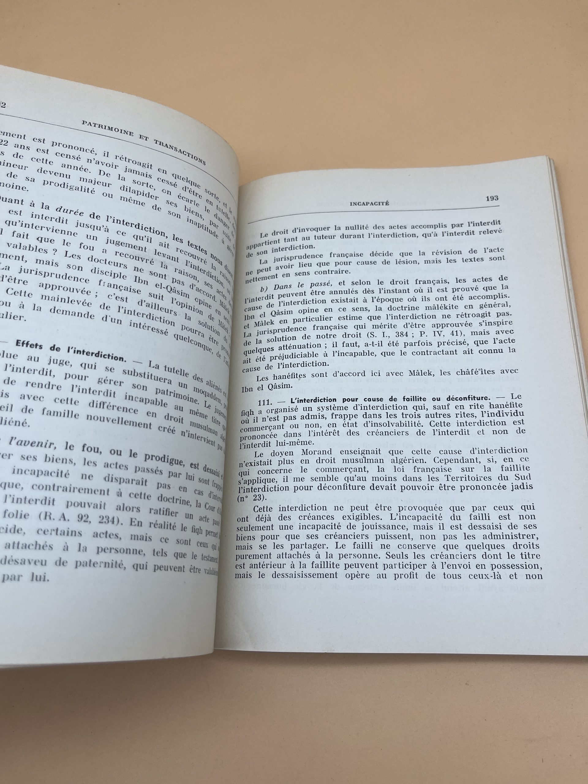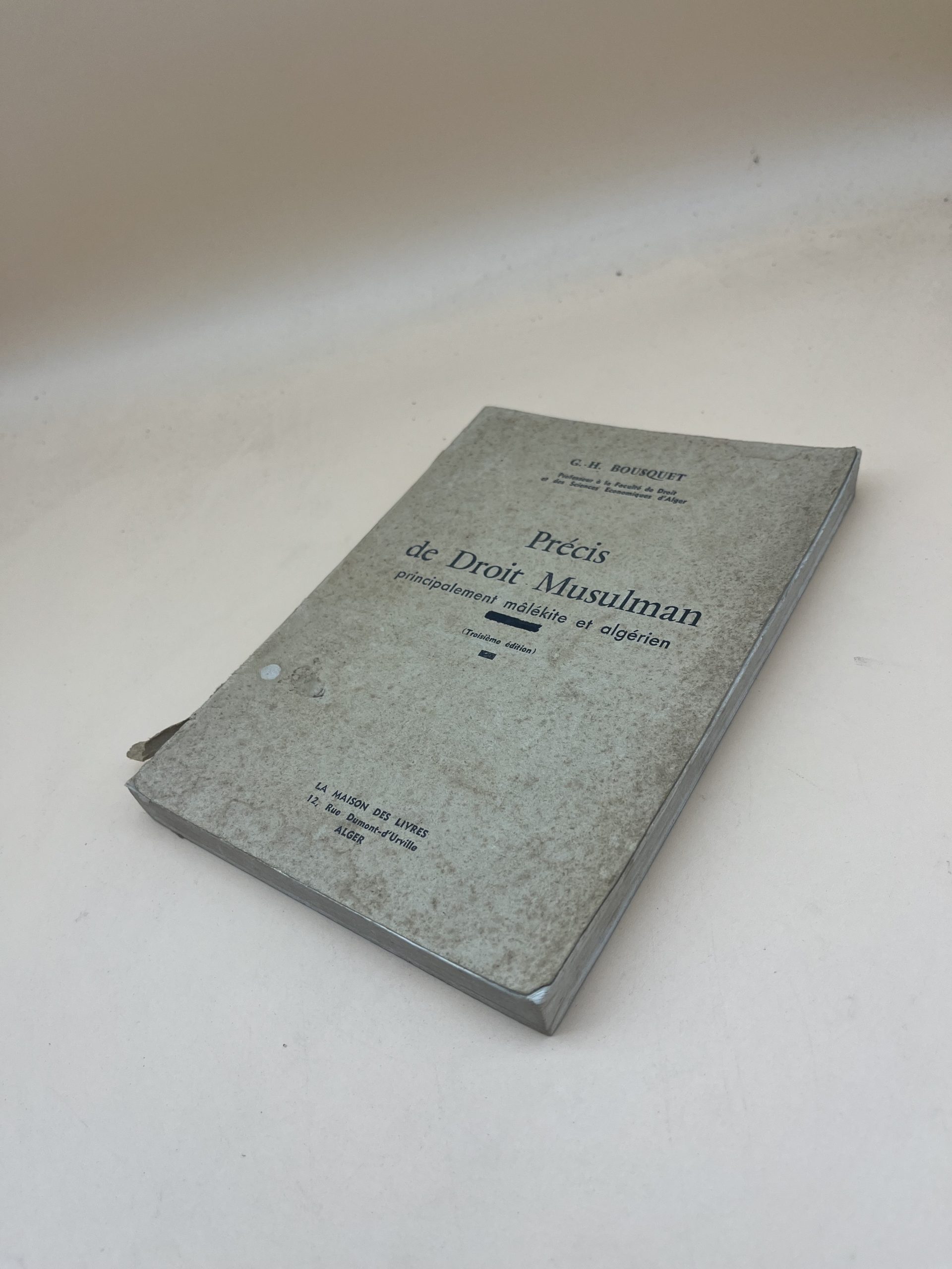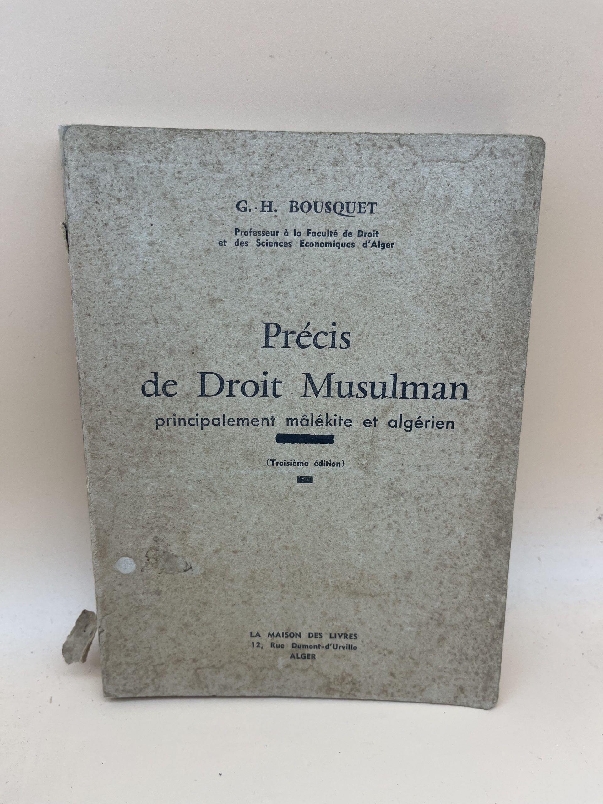 Un ouvrage juridique classique et rare, indispensable pour les étudiants en droit, les historiens et les praticiens. Ce précis détaille les fondements du droit musulman (fiqh) selon l’école malékite, prédominante au Maghreb. Il couvre le statut personnel, les successions et les biens, offrant un aperçu précieux de l’application du droit en Algérie durant la période coloniale et post-coloniale.​