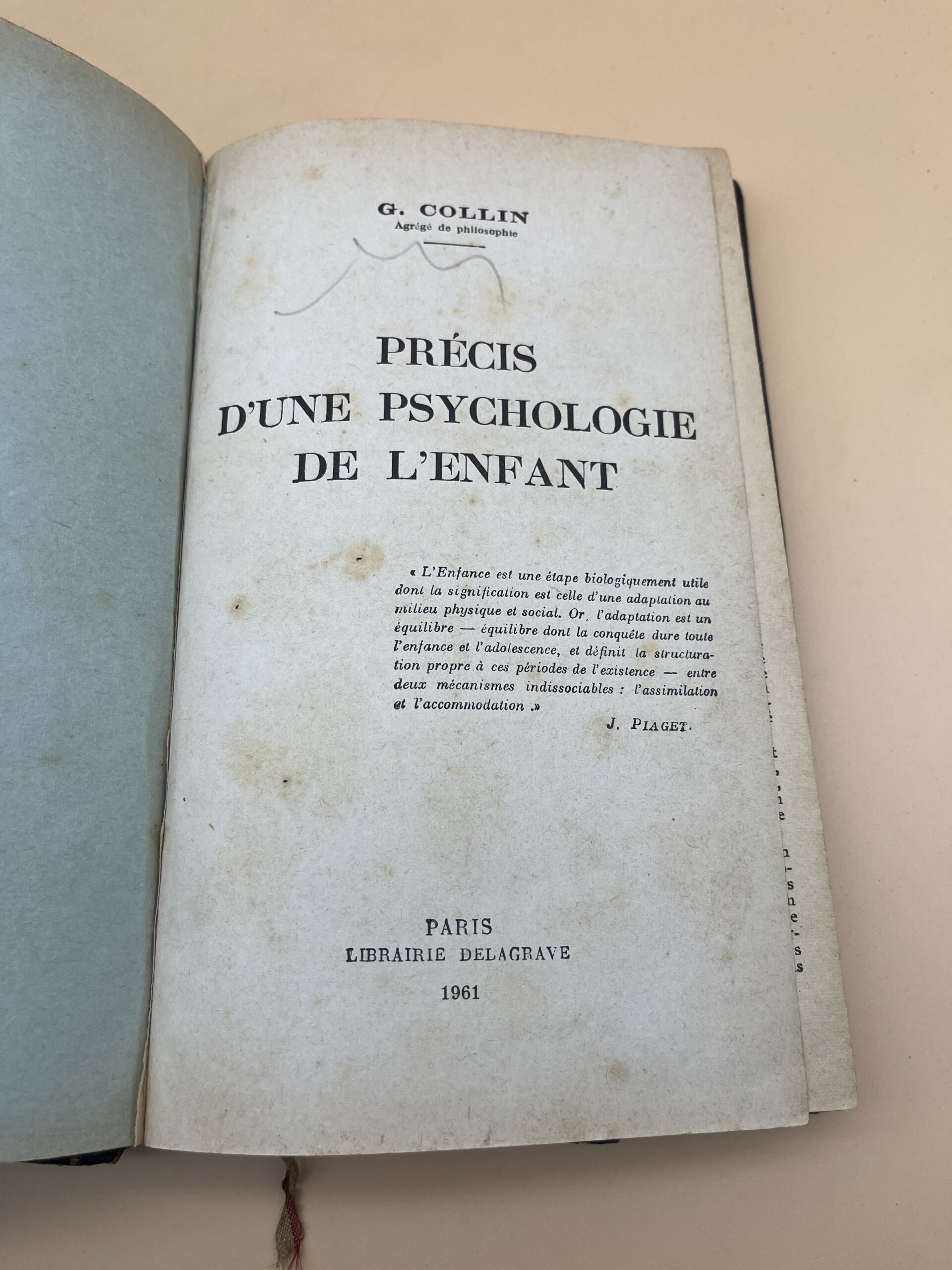 Livre ancien relié sur la psychologie de l’enfant par G. Collin. Un précis vintage de collection (Années 50/60).