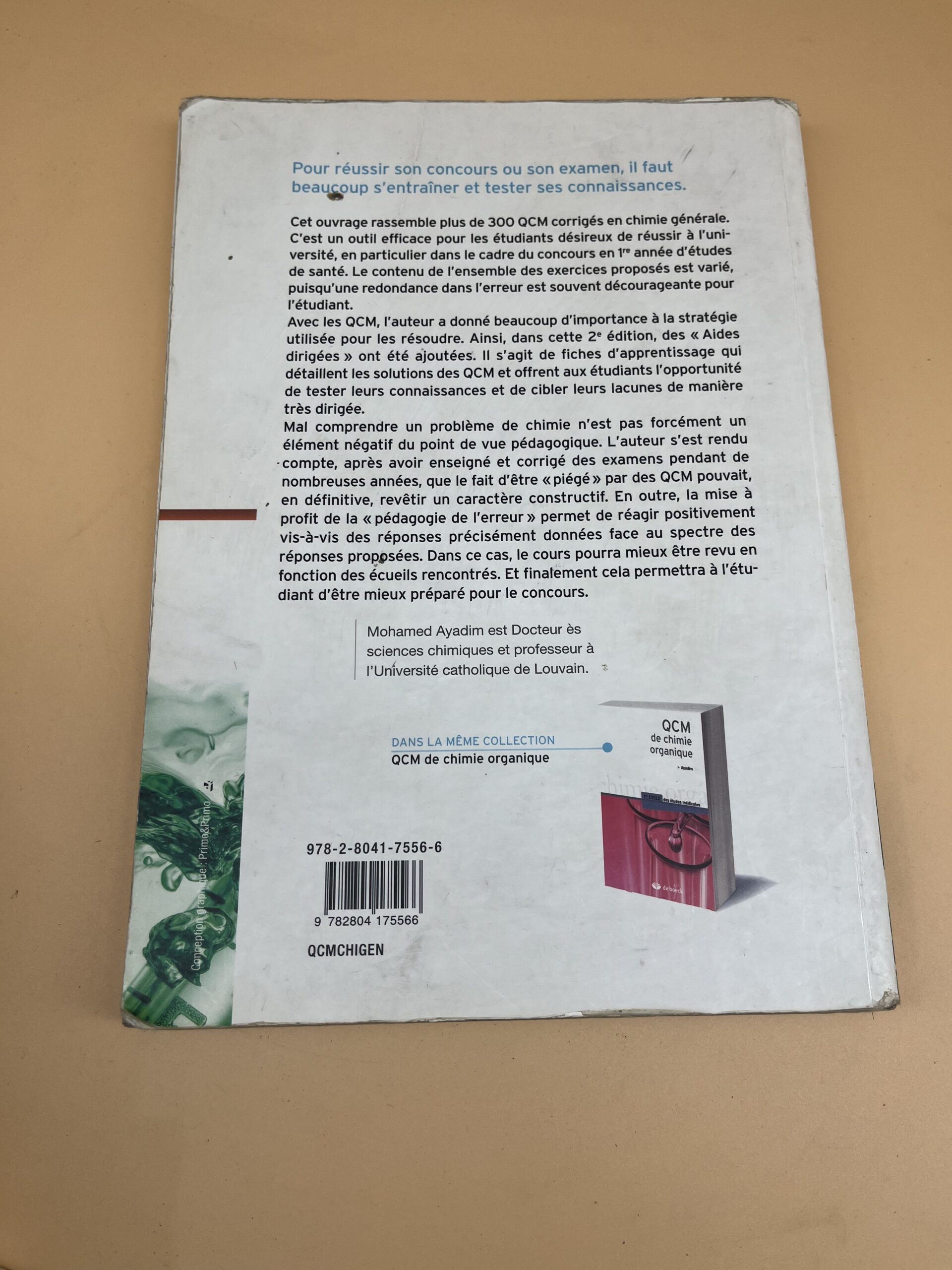 Livre de QCM en chimie générale pour étudiants en médecine (1er cycle). Idéal pour réviser et s’entraîner efficacement.