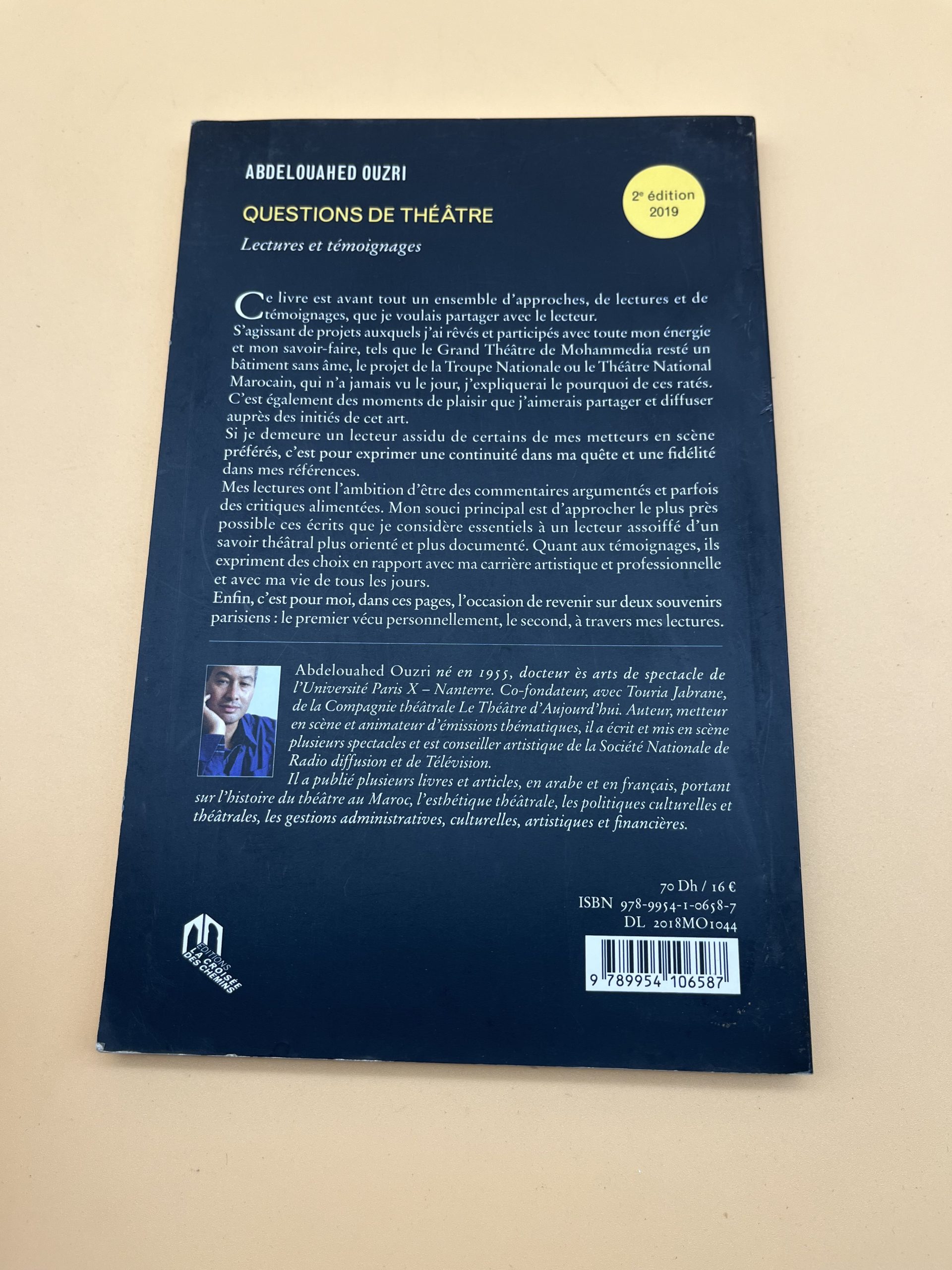 Questions de théâtre d’Abdelouahed Ouzri, lectures et témoignages sur le théâtre contemporain, réflexion sur texte, mise en scène et public.