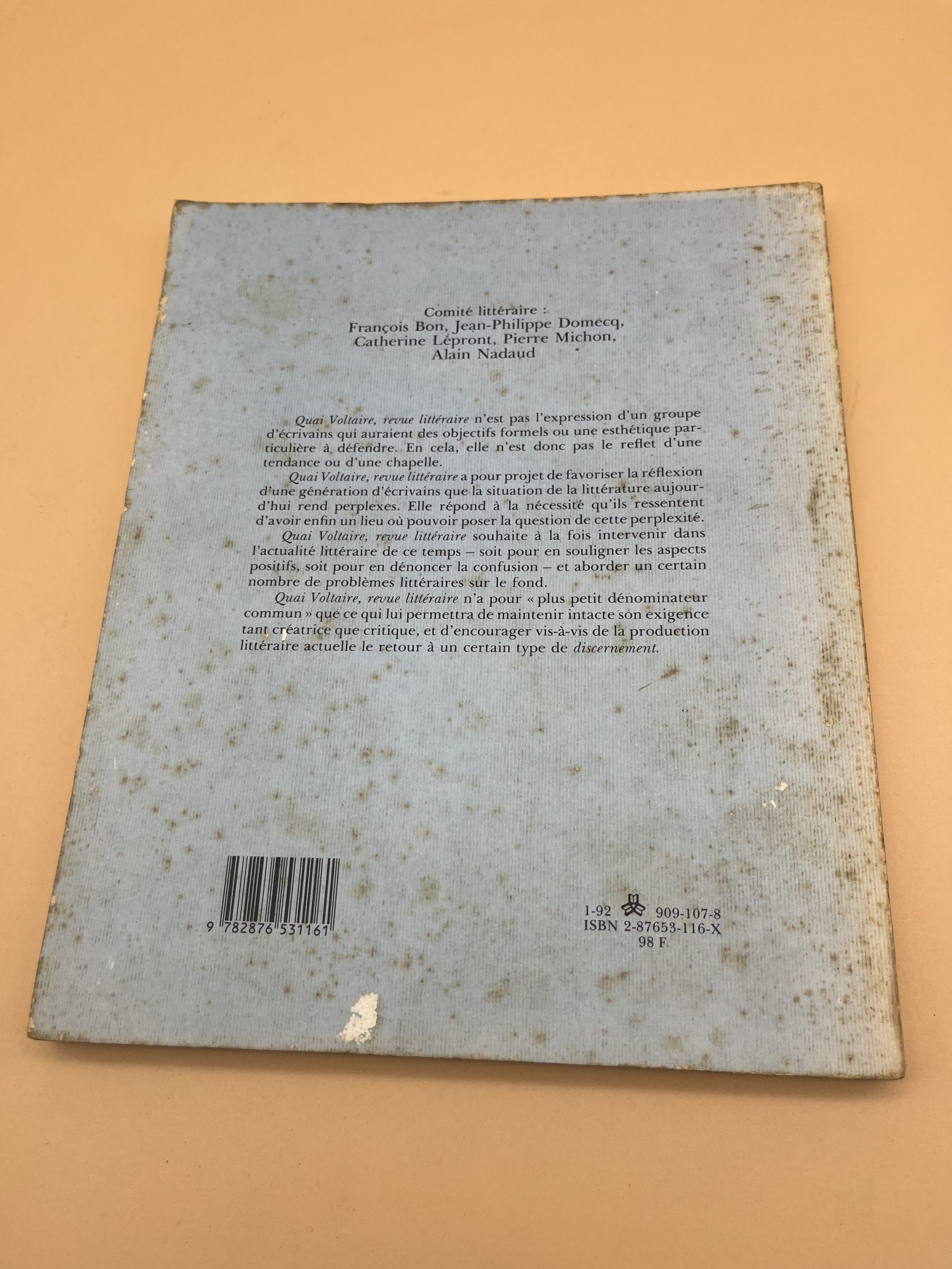 Retrouvez l’esprit des années 90 avec ce numéro d’hiver de la célèbre revue littéraire Quai Voltaire. Ce recueil contient des textes inédits, des critiques et des réflexions d’écrivains contemporains, offrant un panorama intellectuel unique de l’époque. C’est une pièce de choix pour les collectionneurs de revues littéraires et ceux qui cherchent à lire des articles de fond introuvables ailleurs.