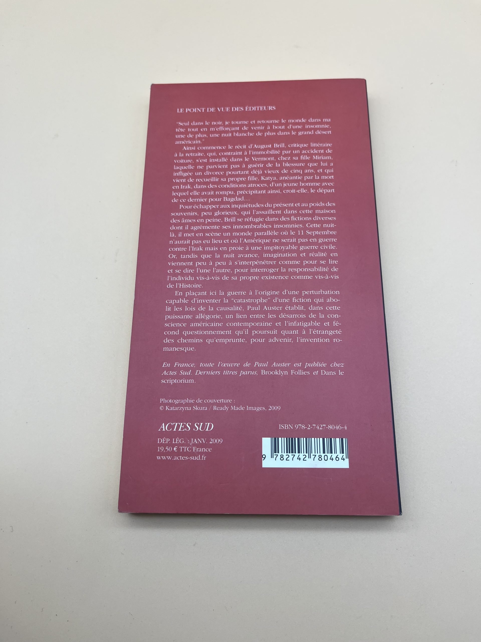 Un roman envoûtant de Paul Auster sur la solitude et l’imaginaire, édition française Actes Sud.